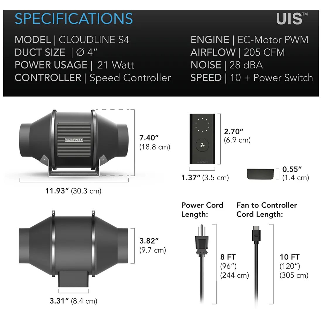 Vær den første til at anmelde “AC Infinity – CLOUDLINE S4 Quiet Inline Fan 100mm @ 348 m³/t”