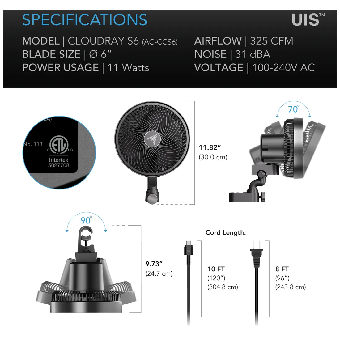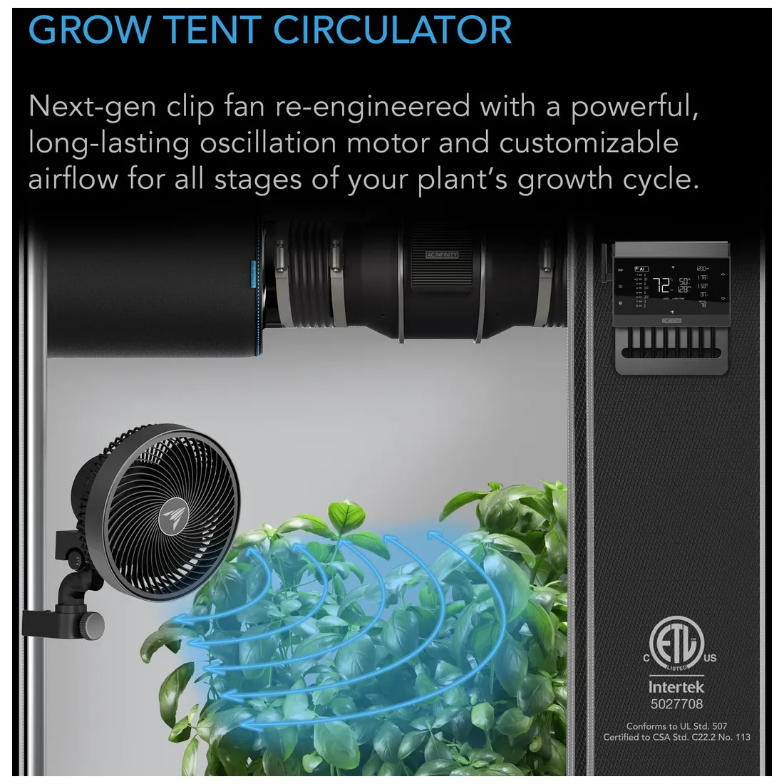 AC Infinity – CLOUDRAY S6 Oscillation Dynamic Wind Grow Tent Clip Fan 15 cm