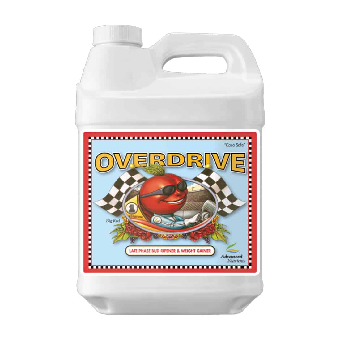Overdrive fra Advanced Nutrients afdækker dine planters reproduktive potentiale i de sidste uger af blomstringsfasen. I de fleste tilfælde falder de etårige planters stofskifte gradvist i løbet af de sidste uger af plantens liv. I denne afgørende periode leverer Overdrive et stærkt energiboost af vitaminer, organiske materialer, hormoner og specialiseret katalyse til planterne. Dette forbedrer også produktionen af duftstoffer og terpener i planten, og giver overvældende blomster og krystaller i de sidste uger af blomstringen, der hvor planterne vokser mest. Men det er især når Overdrive bruges i kombination med Big Bud og Bud Ignitor, at den fungerer bedst, og giver maksimal energi til den sene blomstringsperiode. Det skal tilføres i 6+7 uge af blomstrings perioden, og dosering er 1,5-2,5 ml. per liter vand.