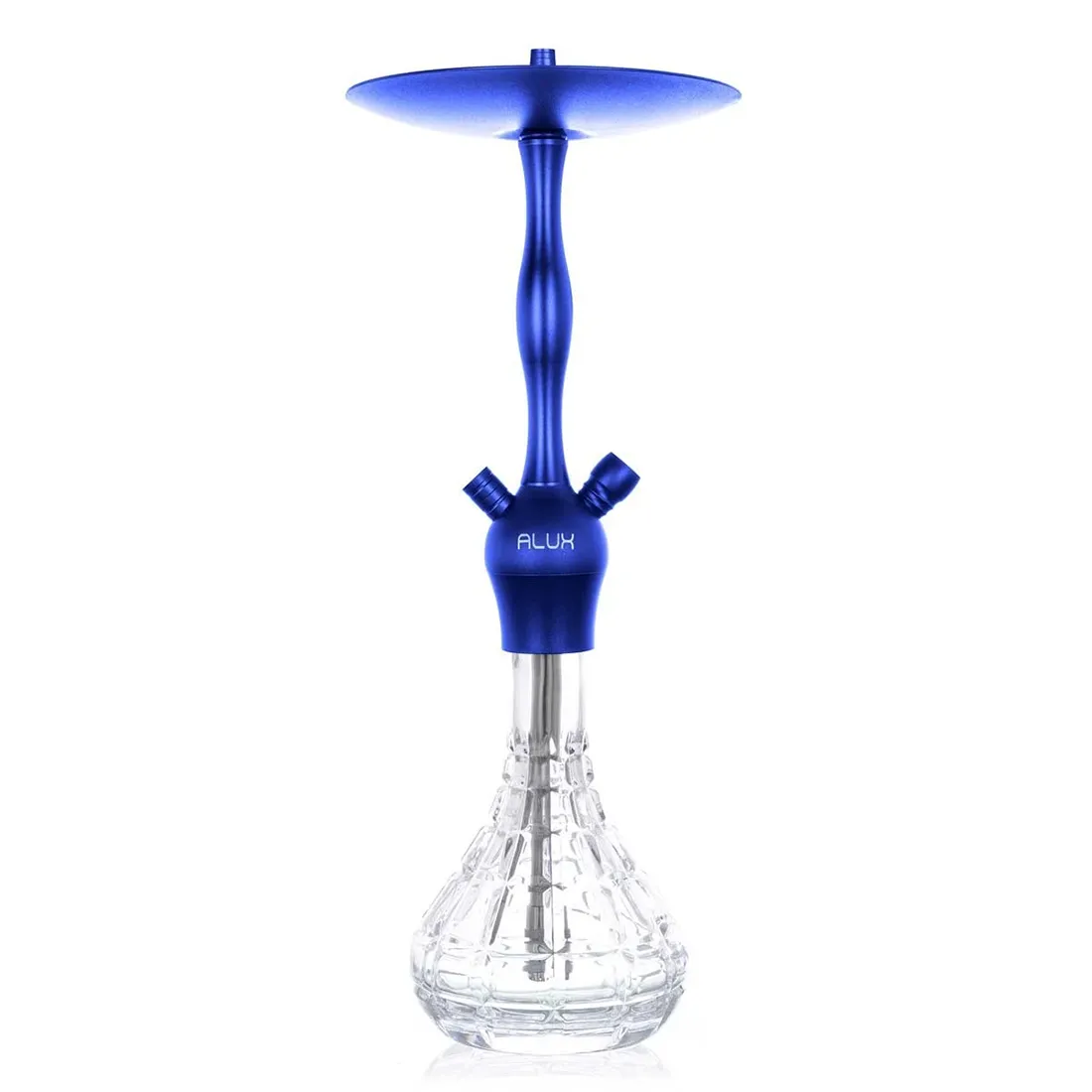 Aladin Alux Admiral i blå er en elegant og moderne vandpibe på 50 cm, der kombinerer letvægt, kvalitet og funktionalitet i et flot design. Den anodiserede aluminiumsøjle har en flot blå farve, som står i smuk kontrast til den klare glaskolbe, og giver piben et stilrent og frisk udtryk, der passer perfekt til både begyndere og de mere erfarne rygere der ønsker en god og billig vandpibe.Som alle Admiral modeller leveres den som et komplet sæt, klar til brug fra første dag, med både silikoneslange og kaminhoved, alt du skal tilføje er blot kul og tobak (medfølger ikke). Click-lock systemet gør samling og rengøring nemt, mens det lukkede kammer sikrer en optimal luftgennemstrømning, så du hurtigt kan puste røgen ud. Diffusoren på dypperøret kan justeres eller fjernes helt, afhængigt af hvor let eller stille et sug du foretrækker. Admiral modellen har ét 18,8 mm slangeudtag, men kan nemt udvides til to med en ekstra adapter, så du kan ryge flere på samme tid.