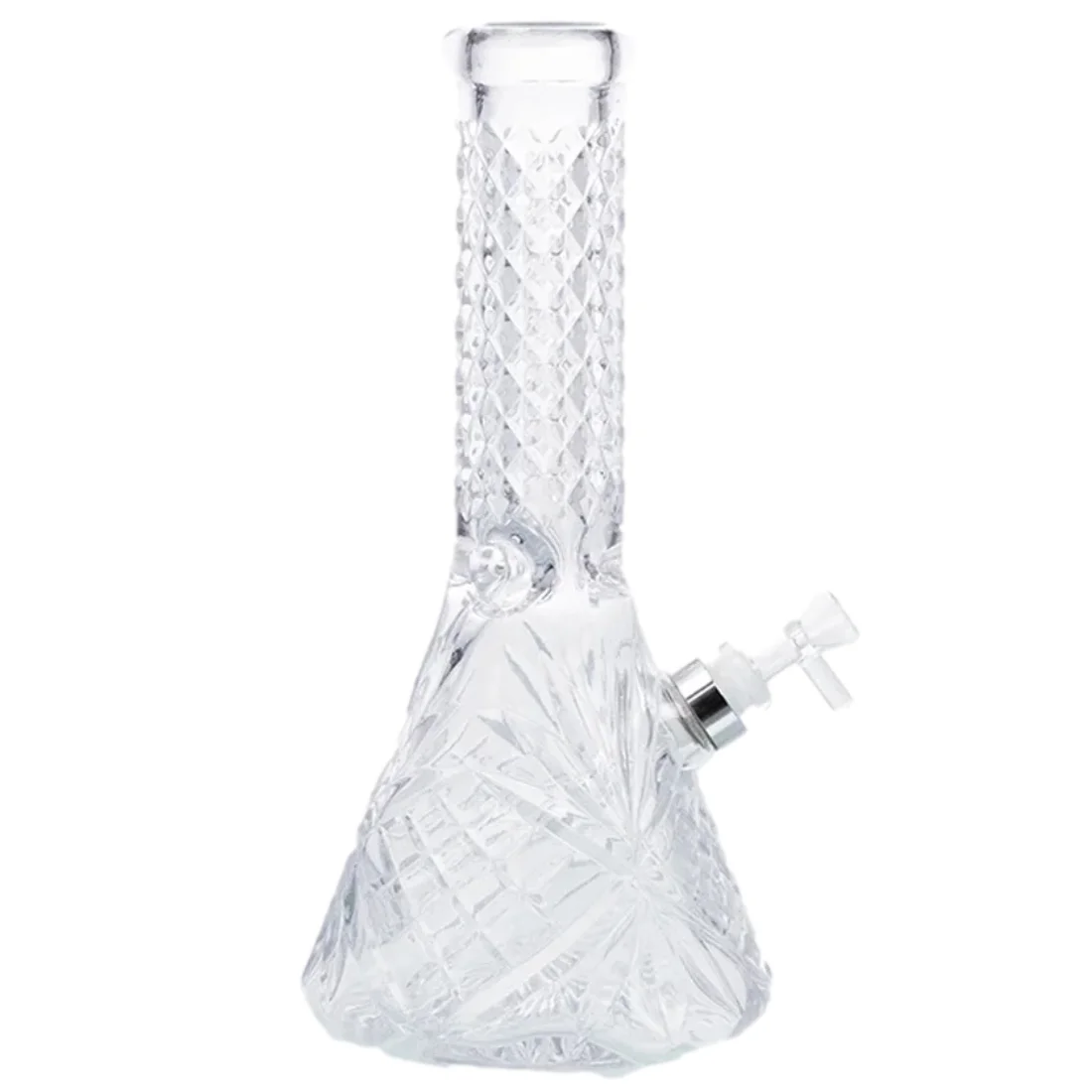 Aladin Model 2 Flower Big er en klassisk glasbong på 31 cm, men med et blomster mønster i glasset. Den kommer med ice-catcher der gør det muligt at fylde et par isterninger op langs halsen, for at opnå en endnu mildere røg. Bongen har ikke sliphul, så du tømmer røgen ved at løfte hovedet der kommer med hank, helt enkelt og uden bøvl (husk dog at købe passende 12,5 mm riste hertil). Formen ligger godt i hånden, vandniveauet er let at ramme, og det hele føles som en god allround bong til de flestes hverdagsbrug.