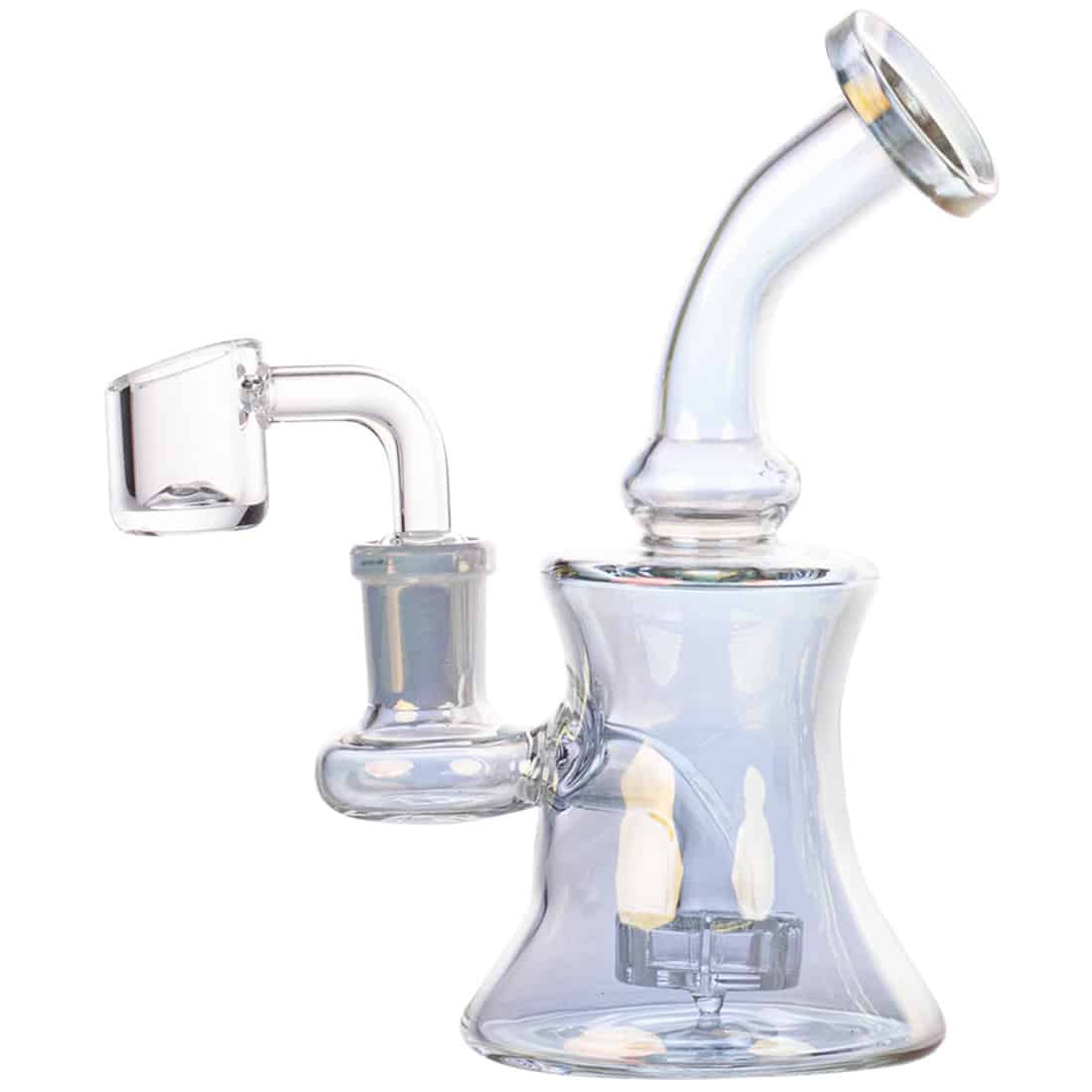 Denne Amsterdam Limited Edition Light Black Bubbler er 15 cm høj, og er en elegant, sofistikeret dab bong, der er perfekt til dem der nyder de finere ting i livet som dabbing. Denne bubbler er fremstillet af borosilikatglas i en 4 mm tykkelse, og har et smuk klart finish, med indviklede gulddetaljer, der helt sikkert vil få dine kammerater til at vende hovedet. Det stilkløse design, gør den nem at rengøre og vedligeholde, og den brede base giver bongen en god stabilitet. Et must-have for enhver kræsne ryger, der sætter pris på stil og kvalitet til en god pris.OBS: Bangeren / hovedet må kun opvarmes på undersiden, og må ikke opvarmes på siden da glasset så kan flække!