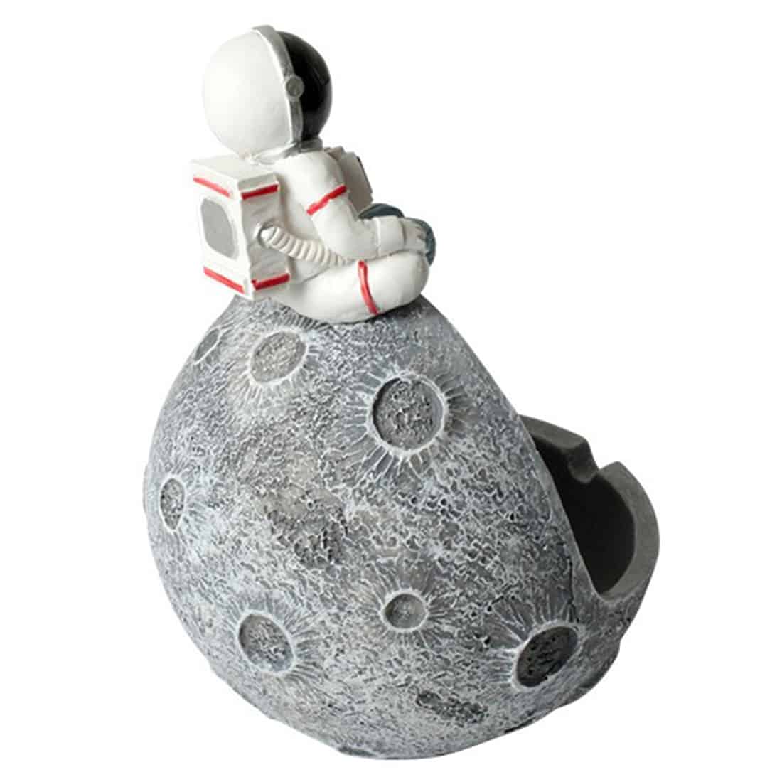 Tag med på en kosmisk oplevelse med dette fantastiske ASHtronaut Open Moon Ashtray! Dette unikke askebæger byder på en smuk og detaljeret gengivelse af månen som bund, hvor en drømmende astronaut i polyresin sidder ovenpå, og betragter universets uendelige vidder med hovedet hvilende på sin venstre hånd. Dette askebæger er ikke blot et praktisk redskab til at aske dine cigaretter eller joints, men kan også være et enestående dekorativt element til ethvert rum, så selv hvis det ikke anvendes aktivt som et askebæger, kan det stadig pynte i hjemmet. Den åbne måneform giver god plads til aske og skodder, og de fine detaljer i både månen og astronauten, skaber en unik atmosfære og god samtale åbner, der altid ender langt ude! Askebægeret er fremstillet af polyresin, og er derfor nemt at tømme og rengøre. Den håndlavede astronaut-figur er håndmalet, hvilket kan resultere i små variationer og imperfektioner i malingen, men det er netop dette der giver hvert askebæger sin helt egen unikke karakter og personlighed. Det er også den perfekte gaveidé til enhver ryger og rumnørd, der elsker universet og alle dets hemmeligheder, og samtidig kunne bruge en unik og spændende genstand til deres indretning, som de med garanti ikke har set før! Så dette ASHtronaut er mere end bare et askebæger, det er et stykke kunst og en ny ven, der sørger for at du aldrig ryger alene!