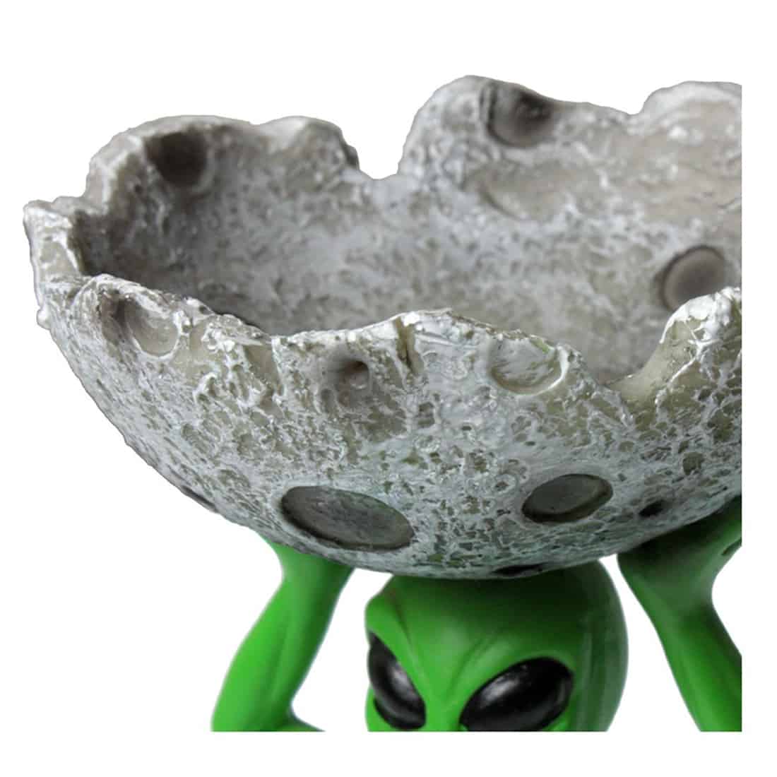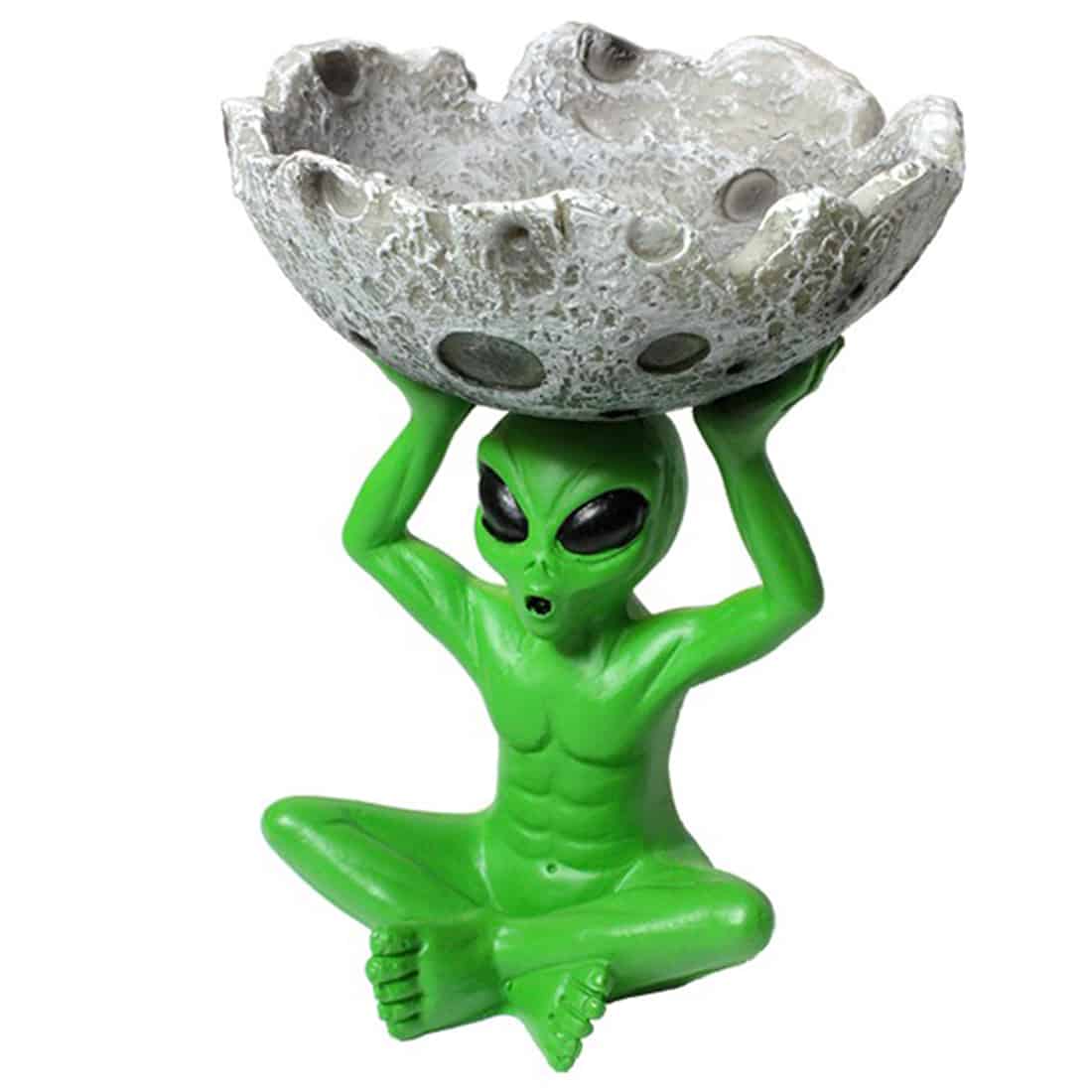 Har du altid manglet en god makker, der ved hvornår der skal snakkes og ties? Det sidste ved denne hjælpsomme alien ihvertfald hvordan man gør, som du nu kan få chancen for at købe i en begrænset periode! Han er en god lytter, og et meget stærkt væsen, der på trods af sine tynde arme, altid står klar døgnet rundt med sine dybe askeskål, formet som månen! Selvom dine cigaretter eller joints hviler i timevis over hans arme, eller skålen er fyldt op med aske og skodder, så tag ikke fejl: Han taber dem aldrig selvom det ser hårdt ud!
