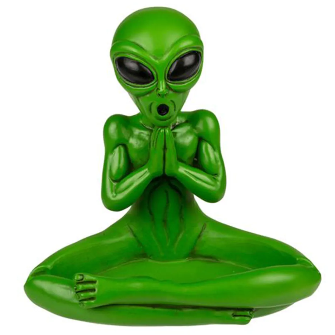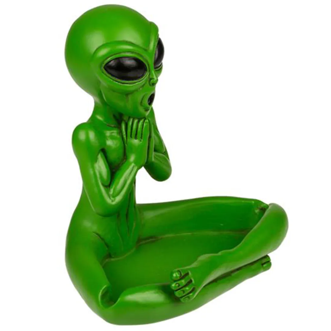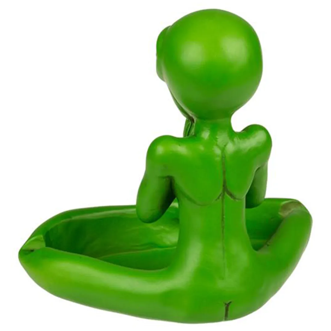 Dette alien askæebæger er til dig der gerne vil kombinere lidt zen med rumvæsner i din rygepause, eller bare søger en god gaveide til rygere. Den grønne figur sidder i klassisk meditationsstilling med hænderne samlet og blikket fokuseret, mens den nederste del fungerer som askebæger med to riller til dine cigaretter. Lavet i slidstærkt polyresin og leveres i passende æske.