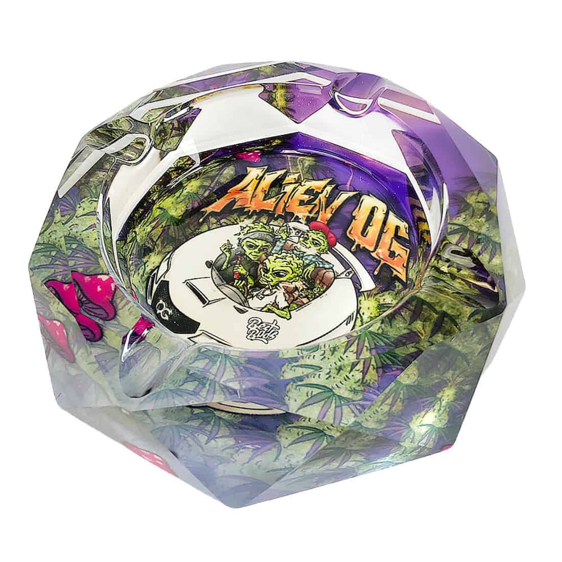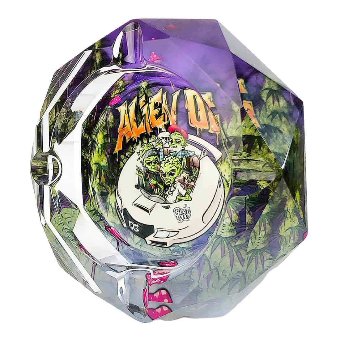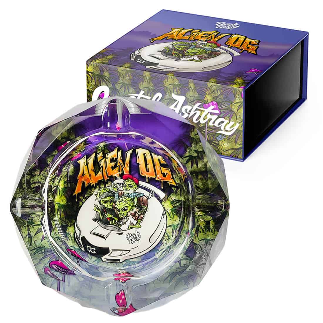 Med dette flotte crystal ashtray fra Best Buds, får du et solidt kvalitets askebæger, med et sjovt alien motiv i midten, og gennemførte detaljer hele vejen rundt. Det kommer med 4 indhak i siden, hvilket giver plads til flere joints og- eller cigaretter på samme tid. Den bliver desuden leveret i en flot æske, der gør det til en ideel gaveide, til din cannabisrygende ven. Fås også i flere andre cannabis relaterede designs.