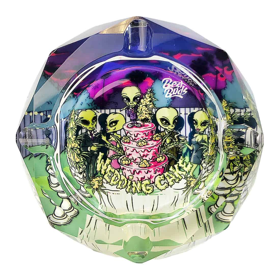 Tro det eller ej! Aliens bliver også gift, og skal naturligvis have bryllups kage som alle andre! Det beviser dette flotte og unikke askebæger, som er produceret af Best Buds, og fremstillet i en solid kvalitet, men 4 hak i siden, der gør det muligt at hvile din joints i askebægeret. Så er du fans af alien? Og søger et sjovt og anderledes askebæger til din ryger? Så er dette askebæger et sikkert hit! Det bliver leveret i en kreativ æske i samme design, hvilket også gør det til den perfekte bryllups gaveide, som en lille sidegave til brudgommen, når gæsterne altså er taget hjem naturligvis!