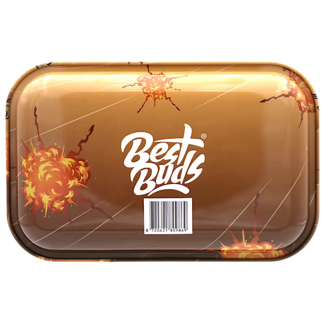 Best Buds Jet Fuel metalbakken er lavet til dig der kan lide når tingene går stærkt, men stadig med stil. Med sit farverige design og det velkendte Jet Fuel strain i fokus, får du her en stor og praktisk rullebakke med masser af plads til dine cones, jointpapir, filtertips, grinder og alt det andet du skal bruge for at rulle din joint. Lavet i solidt metal med glat overflade, nem at rengøre og nem at tage med. En oplagt favorit for samlere og dem der ved at Jet Fuel hitter hver gang.