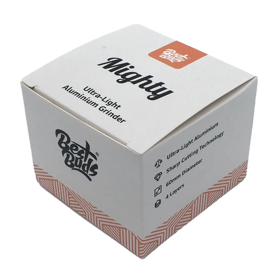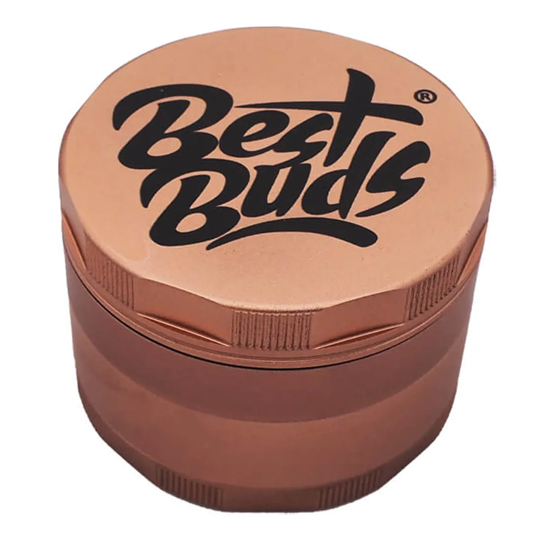 Dette er en stor og solid grinder fremstillet af høj kvalitets aluminium, der kan gøre det til en god ven i mange år frem! Med en diameter på 60 mm er den let at håndtere, og kompakt nok til at have den med rundt, og den rosenguld farve gør den både ekstra stilfuld og elegant at kigge på. Den kommer i fire dele, og med lange og skarpe “rail” tænder, der hjælper med at kværne din plante til en god grov form, perfekte til at ryge direkte på piben. Der medfølger en skraber til det overskydende ryst i bunden, og husk at rengøre grinderen ofte, for at bevare den gode friktion.