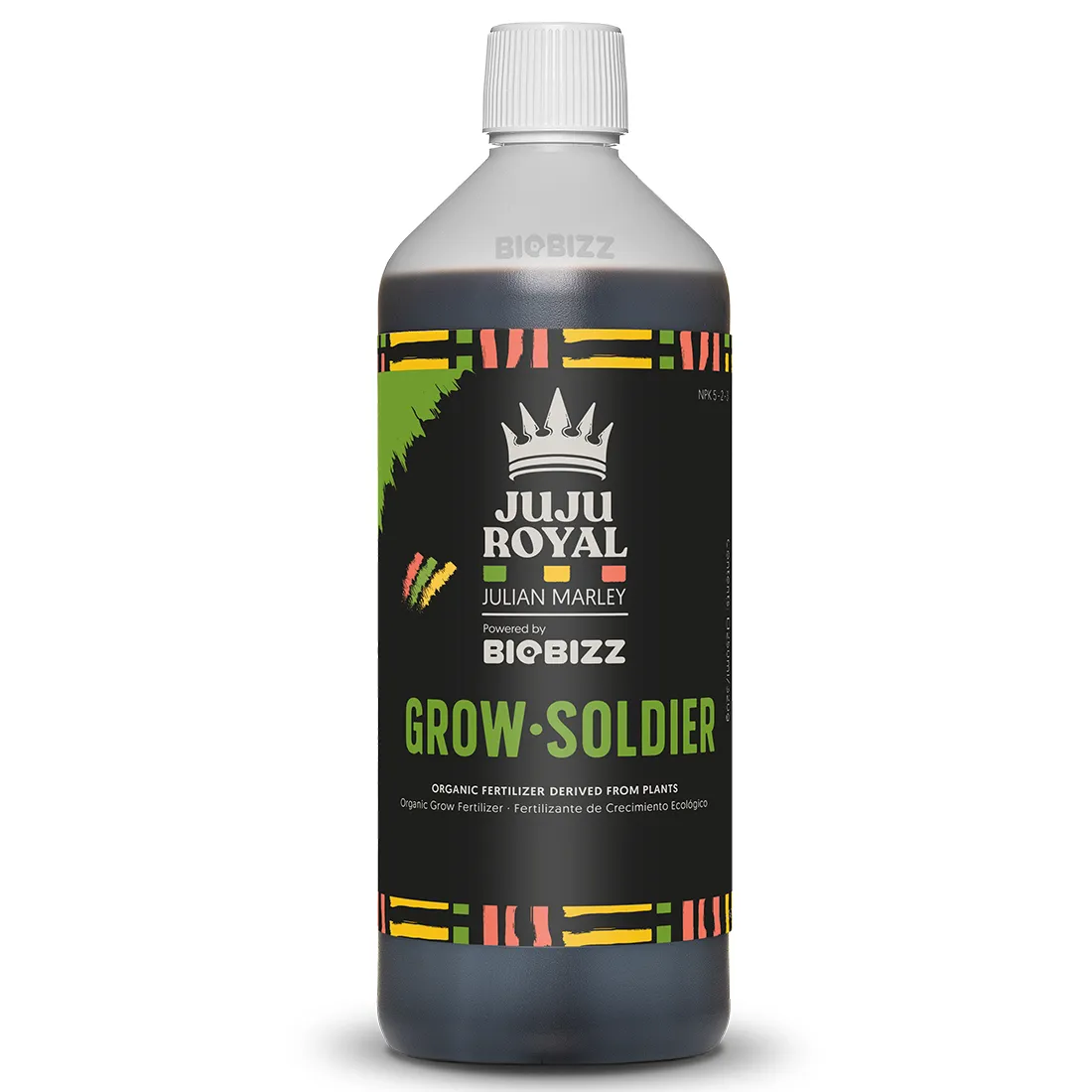 BioBizz Juju Royal Grow Soldier er en effektiv organisk vækstgødning, der understøtter dine planters vækst gennem hele dyrkningsperioden. Grow Soldier er egnet til alle typer substrater, vækstmedier og dyrkningsmetoder, og tilfører dine planter de nødvendige NPK-næringsstoffer, for en mere kraftig og sund vækst. Udover at fremme plantevæksten, stimulerer Grow Soldier også det mikrobielle liv i jorden, som er nødvendig for en optimal vækst. Du kan med fordel bruge Grow Soldier fra anden uge og frem, og kombinere den med Flowa Bloom og Green Mystic, for at skabe det helt perfekte miljø for dine planter. Udviklet af BioBizz i samarbejde med Juju Royal, for at give dine planter den bedste behandling fra start til slut.Sådan anvender du BioBizz Juju Royal Grow Soldier : Brug 1-4 ml. gødning pr. 1 liter vand, fra anden uge og gennem hele vækstperioden.