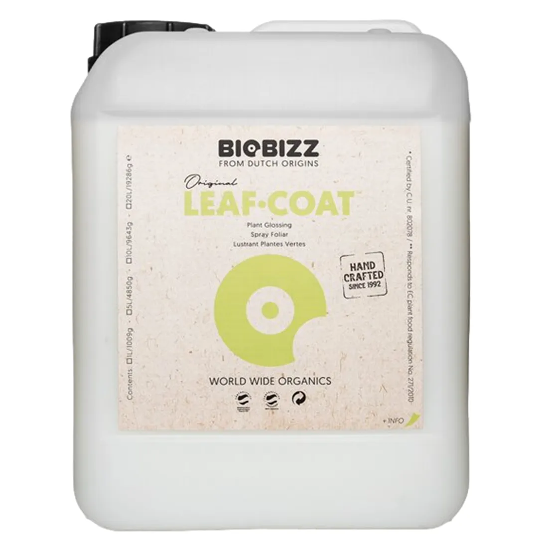 BioBizz Leaf Coat er en glansspray til blade som er klar til brug, udviklet til at beskytte dine planter mod udtørring og uønskede skadedyr, helt uden brug af kemikalier. Denne 5 liters version er perfekt til større setups, eller dig der vil sikre dine planter hele vejen gennem vækst og blomstring, og kan nemt udskiftes til den lille sprayflaske fra deres 0,5 liter version. Leaf Coat danner en naturlig, åndbar film over bladene, som stadig lader lys og luft trænge igennem, men reducerer fordampning og beskytter mod temperaturudsving. Produktet er 100% organisk, og kan bruges sammen med alle Biobizz produkter samt i både jord, kokos og hydroponiske systemer.