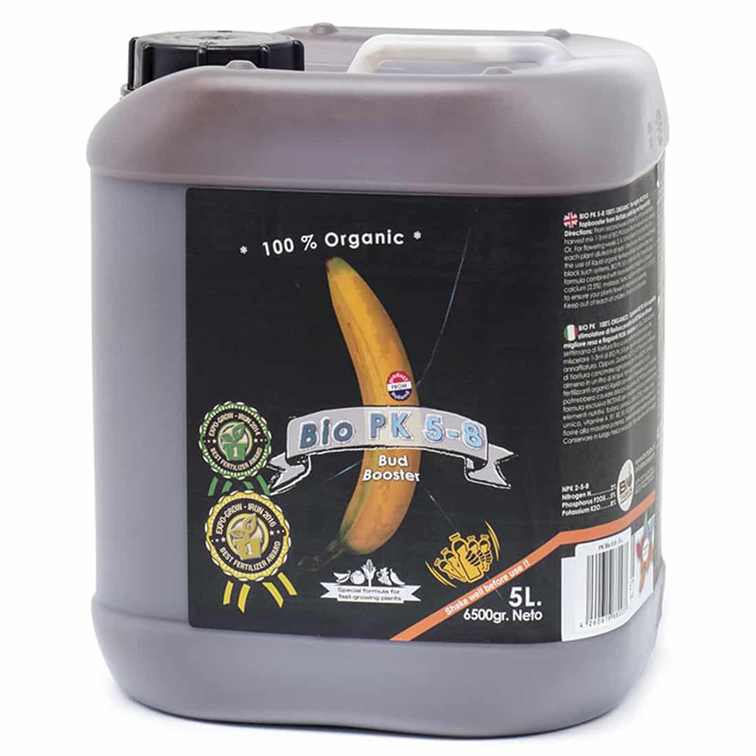 BioTabs Bio PK 5-8 er en højkvalitets blomstergødning, der er udviklet af BioTabs til at støtte og forbedre blomstringsfasen af dine planter. Denne specialiserede formel er designet til at levere den rette mængde fosfor (P), og kalium (K), i den optimale forhold på 5-8, der er nødvendig for en sund og rigelig blomstring af cannabis planter. Bio PK 5-8 er fremstillet af nøje udvalgte organiske ingredienser, der sikrer en naturlig og bæredygtig næringsforsyning til dine planter. Denne blomstergødning bidrager til at forbedre blomsterudviklingen, øge blomsternes størrelse og tæthed, samt forbedre aroma og smag af dine afgrøder. Den er velegnet til brug i forskellige plantearter og dyrkningsmetoder, herunder indendørs, udendørs, samt hydroponisk dyrkning. Med BioTabs Bio PK 5-8 kan du sikre at dine planter får den nødvendige ernæring i den afgørende blomstringsperiode, og denne 5-liters flaske giver dig nok gødning til at vare i lang tid, hvilket gør den ideel til større projekter.Sådan anvender man BioTabs – Bio PK 5-8For at bruge Bio PK 5-8 skal du blot følge doseringsvejledningen, og blande den anbefalede mængde gødning med vand. Anvend gødningen regelmæssigt i blomstringsfasen for at opnå de bedste resultater. Det er vigtigt at følge anbefalingerne og undgå overdosering, da det kan være skadeligt for planterne.