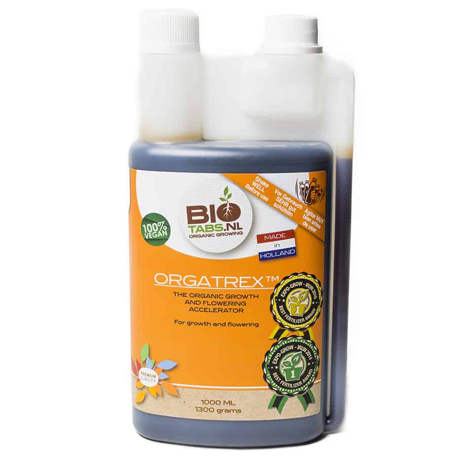 Orgatrex fra BioTabs er et Bio-accelerator til vækst og blomstring. Orgatrex kan bruges som flydende gødning til grøntsager, blomster og urter, samt træer og buske. Brug 1,5 ml pr liter vand i jord og kokos. Orgatrex er sammensat af ingredienser, der er godkendt af Soil Association. Med det høje indhold af sporstoffer og sukker, så fungerer denne gødning i harmoni med jordbakterierne. BioTabs Orgatrex gødning indeholder ingen dele eller produkter af animalsk oprindelse. Ryst og rør godt rundt inden brug!