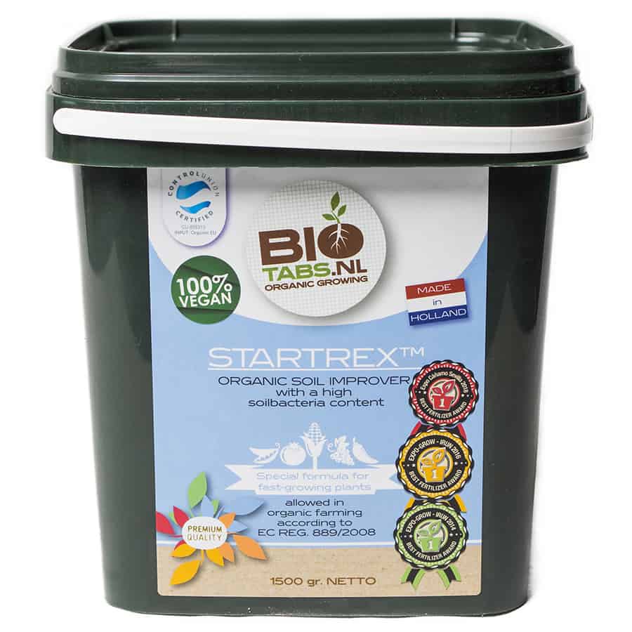 Startrex indeholder en stor mængde jordbakterier, der straks arbejder for at forbedre jorden, og sikre en bedre optagelse af organisk gødning. Det meste pottejord steriliseres for at dræbe ukrudtsfrø og bakterier. Dette dræber også alle fordelagtige jordbakterier og svampe. Ved at blande din Startex fra BioTabs i din pottejord, kan du sikre dig, at din jord øjeblikkelig kommer til live, så din plante hurtigere kommer i rod. De 3 vigtigste komponenter i Startrex er fulvinsyrer, humus og silicium, som kan anvendes til alle slags blomster, grøntsager, urter og samtidig til at plante træer eller buske. Om det så er til indendørs dyrkning eller udendørs, i jord eller koko, så kan Startrex anvendes.Vejledning: Bland 2 spiseskeer af ca. 25 gram i 5 liter pottejord eller koko, og du har fået en god start.