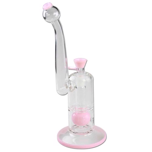 Her er du faldet over en speciel og flot pink bong fra Black Leaf. Den kommer med dobbelt percolator samt en lang lodret hals, hvilket sammen med et godt og komfortabelt ergonomisk mundstykke, gør den yderst behagelig at ryge på. En kugle og disk percolator, filtrerer røgen til en behagelig mild og velsmagende røg. Den er fremstillet af stærkt borosilikatglas, og har haft brugervenlighed for øje. Perfekt som gaveide til den bongrygende kæreste der elsker pink. Vi anbefaler at bruge en rist på 10-12 mm til denne bong.
