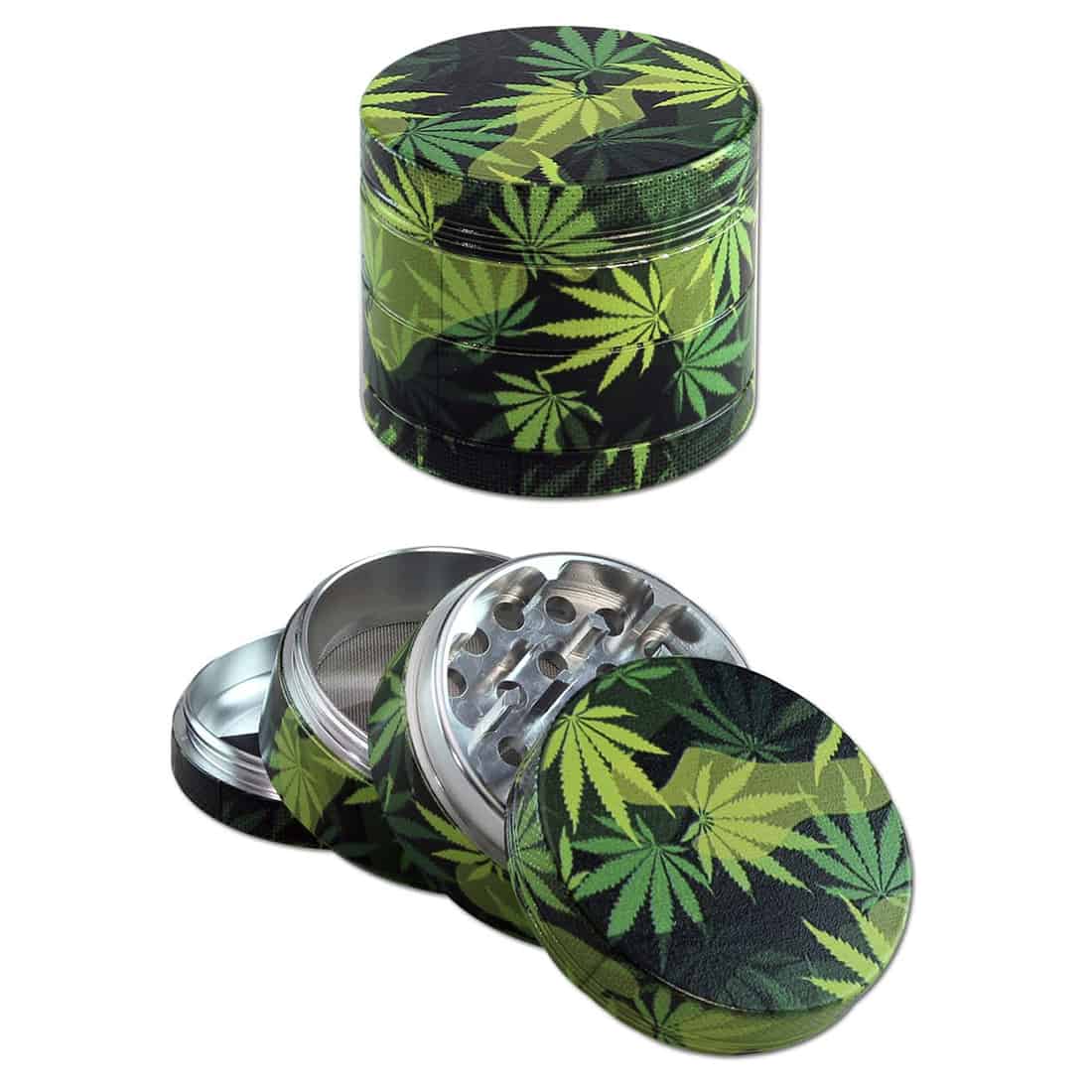 En god aluminium grinder med fuld printet overflade. En Black Leaf Camouflage Grinder har fire rum: Et låg, et grinder rum med skarpe diamant formede tænder, et sigtekammer og et opsamlingsrum til alt pollen guffet.Den har nogle yderst stærke magneter til at holde komponenterne sammen. Derudover passer delene sammen, hvis du har lyst til at lave det til en 3-dels grinder.En virkelig god, stabil og stærk grinder.