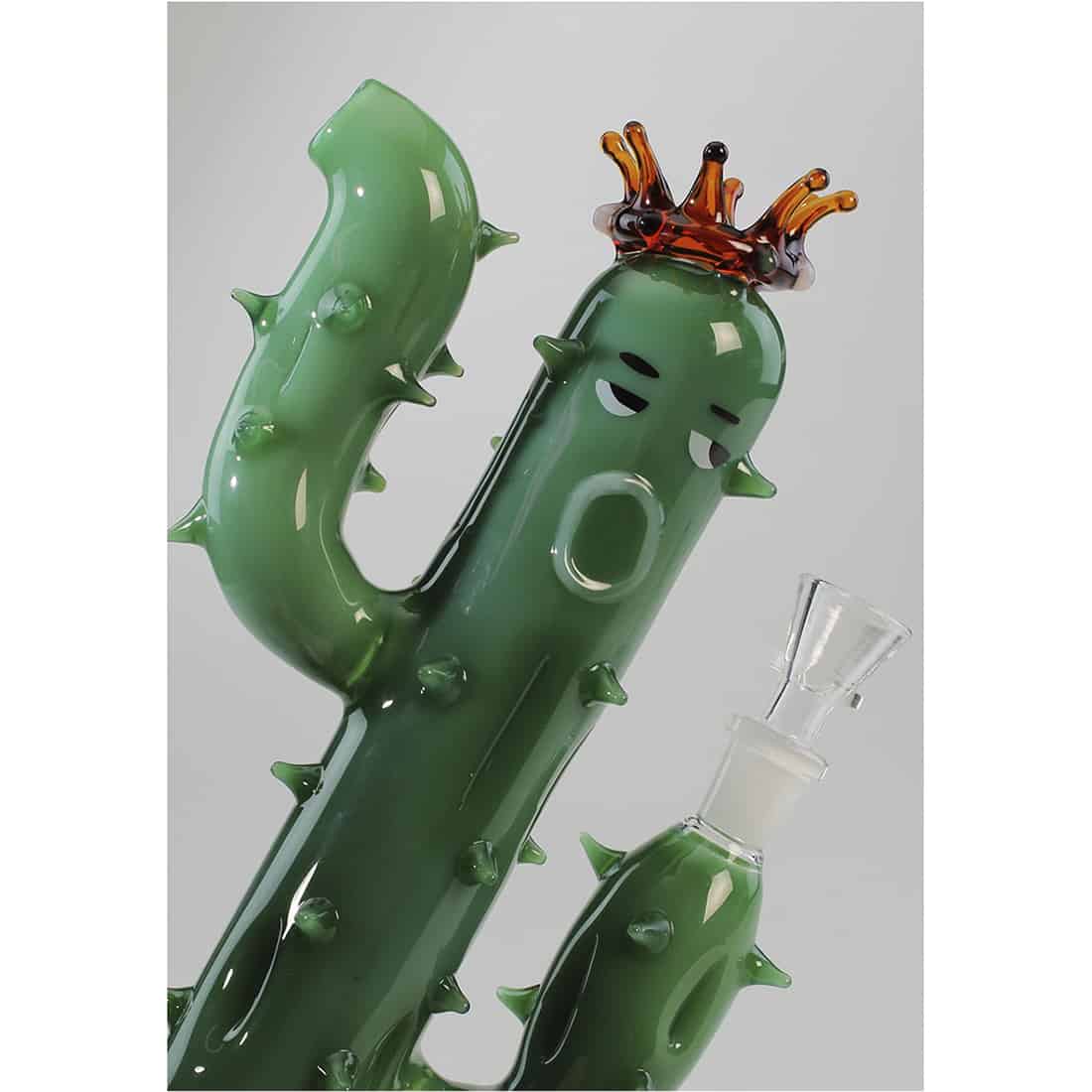 Søger du en sjov og anderledes bong, der med garanti skiller sig ud fra mængden? Så har du fundet den rette lige her! Denne flotte kaktus bong fra Black Leaf, kommer i et flot og kreativt design, og fremstillet af glas med realistiske pigge overalt på bongen, så pas på at du ikke stikker dig! 🌵Den runde fod gør bongen stabil, og det bøjede mundstykke gør den nem at ryge fra, og så kommer den med et aftageligt hoved. Den anbefalede riststørrelse er 12,5 mm, som vi anbefaler at tilkøbe sammen med, da disse ikke medfølger som standard. God ryger!
