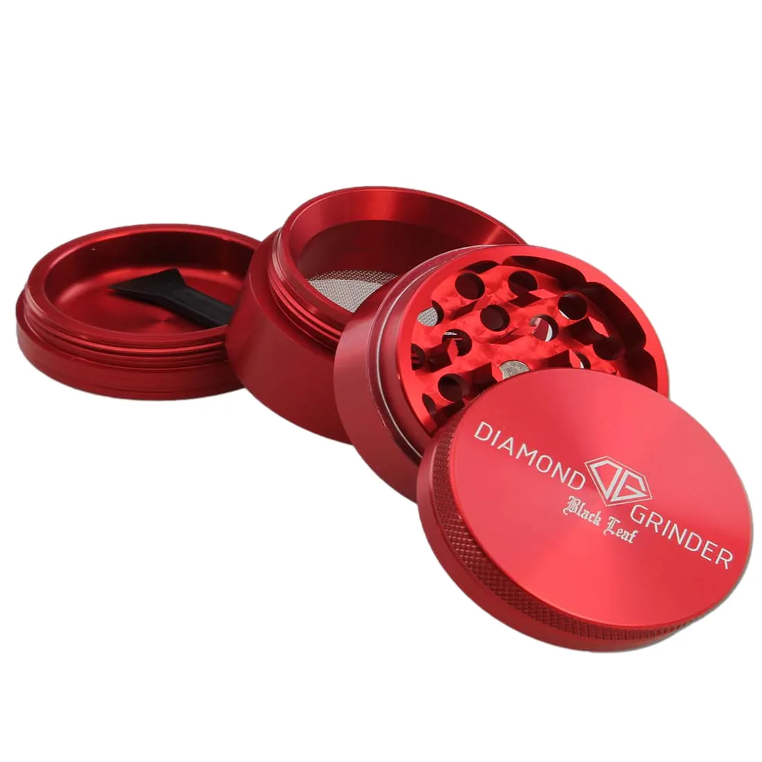 Denne Black Leaf Diamond Grinder i rød er et godt valg for dig, der søger en grinder med både stil og lang holdbarhed. Grinderen er fremstillet i robust flyaluminium, og har en 4-delt opbygning, og skarpe diamantformede tænder, der ubesværet kværner både bløde og hårdere urter, mens den fine pollenrist i rustfrit stål, samler alt rysten sammen i opsamlingskammeret, der med den medfølgende skraber gør det let at opsamle når tiden er inde. Den er udstyret med et magnetisk låg, der holder grinderen sikker sammen, samt en nylonring der giver en glidende rotation uden besvær.
