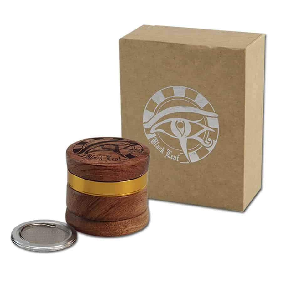 Du kender det alt for godt, nemlig det at skulle finde en fin gave til din kammerat, men er helt på bar bund. Det burde du ikke være længere, med denne flotte træ & aluminiums grinder fra Black Leaf. Den kommer i fire dele med 3 rum i alt, og materialet skaber en god og behagelig fornemmelse, når du grinder dit plantemateriale, der sammen med en nylon glidering, forhindrer slid, og hjælper med at give grinderen en bedre friktion. Det stilfulde Egypt motiv på låget, giver den et cool look, og de skarpe diamant skårne tænder, gør den særdeles nem at arbejde med. Den har derudover en aftagelig pollenrist, som hurtigt kan fjernes ved hjælp fra en skruetråd, samt en ekstra fin rist inkluderet. Der medfølger også en opsamling ske, til det fineste sorteret ryst i bunden, og så bliver den selvfølgelig leveret i en flot og ideel gaveæske, så du kan glæde din ven med denne gode grinder fra Black Leaf.