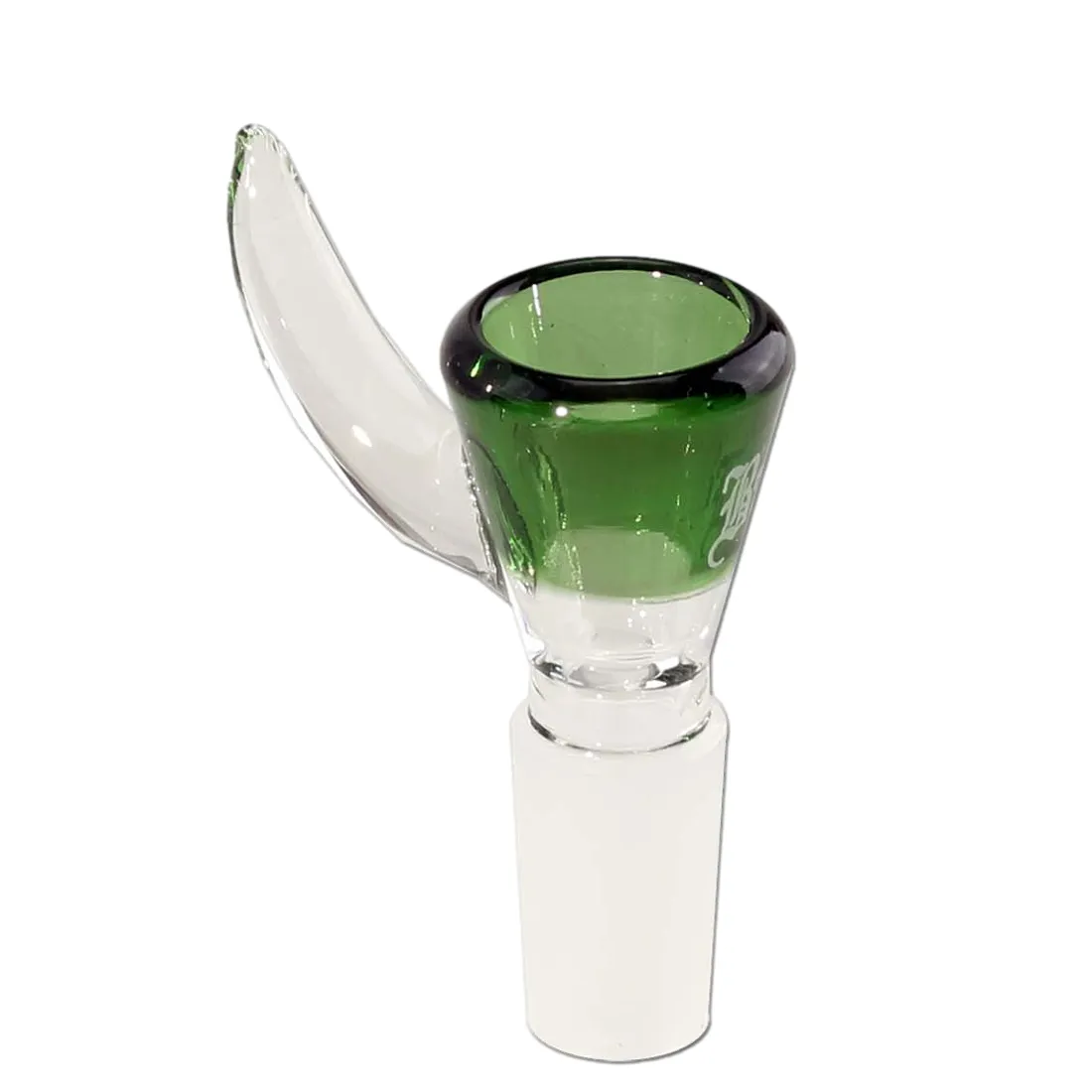 Black Leaf Horned Herb Bowl er et elegant og funktionelt bonghoved, fremstillet af varmesikret borosilikatglas, som giver en god ryger hver gang! Det egner sig på grund af sin lille størrelse perfekt til begyndere, eller til at ryge rent plantemateriale, og med sin unikke hornformede udskæring, gør det nemt at løfte hovedet op så røgen kan inhaleres, hvis det bruges på en bong uden sliphul. Den kommer med et Black Leaf logo graveret på siden, og vi anbefaler at bruge en 12 mm rist hertil.
