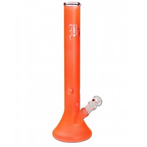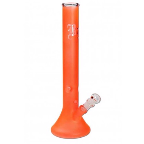 Dette er en neon glas bong fra Black Leaf, som er fremstillet af 3,5 mm varmedygtigt borosilikat glas, i en orange farve og med et Black Leaf logo på halsen. Den har en indbygget ice-catcher, som hjælper med at afkøle røgen ved hjælp af isterninger, så du dermed kan få en ekstra behagelig rygeoplevelse. Derudover har den et sliphul på fronten af bongen, som gør den velegnet til både højre og venstre håndede personer. OBS: Når du skal rengøre bongen, er det vigigt kun at bruge vand til den udvendige belagte del, brug ikke aggresive rengøringsmidler, og pas samtidig på med at ridse det med en skarp genstand eller børste, da det ødelægger belægningen. Vi anbefaler at bruge en rist på 12,5 mm til denne glas bong.