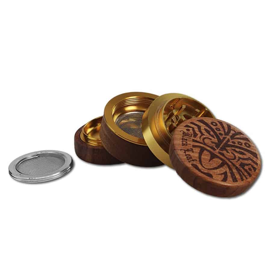 Du kender det alt for godt, nemlig det at skulle finde en fin gave til din kammerat, men er helt på bar bund. Det burde du ikke være længere, med denne flotte træ & aluminiums grinder fra Black Leaf. Den kommer i fire dele med 3 rum i alt, og materialet skaber en god og behagelig fornemmelse, når du grinder dit plantemateriale, der sammen med en nylon glidering, forhindrer slid, og hjælper med at give grinderen en bedre friktion. Det stilfulde Maori motiv på låget, giver den et cool look, og de skarpe diamant skårne tænder, gør den særdeles nem at arbejde med. Den har derudover en aftagelig pollenrist, som hurtigt kan fjernes ved hjælp fra en skruetråd, samt en ekstra fin rist inkluderet. Der medfølger også en opsamling ske, til det fineste sorteret ryst i bunden, og så bliver den selvfølgelig leveret i en flot og ideel gaveæske, så du kan glæde din ven med denne gode grinder fra Black Leaf.