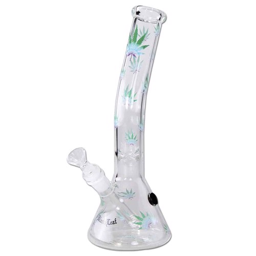 Leder du efter en billig men effektiv begynder bong, der både har stil og funktion? Så er det denne Black Leaf Pastel Leaves bong som du skal vælge! Denne bong er lavet af 3 mm varmesikret borosilikat glas, og har et printet design af vores alles yndlingsplante, i smukke pastelfarver. Bonghovedet er i en lille størrelse, mens det rillede slamrør skaber en god filtrering samt et godt boble flow, der gør oplevelsen perfekt for nystartede bongrygere. Det rummelige iskammer er perfekt til at tilføje et par isterninger, så du kan køle din røg yderligere. Uanset om du er førstegangsryger eller mere erfaren, vil denne bong helt sikkert give dig en behagelig rygeoplevelse. Vi anbefaler at bruge en almindelig rist på 10-12 mm. til denne bong, og IKKE en spoon screen / ske rist.