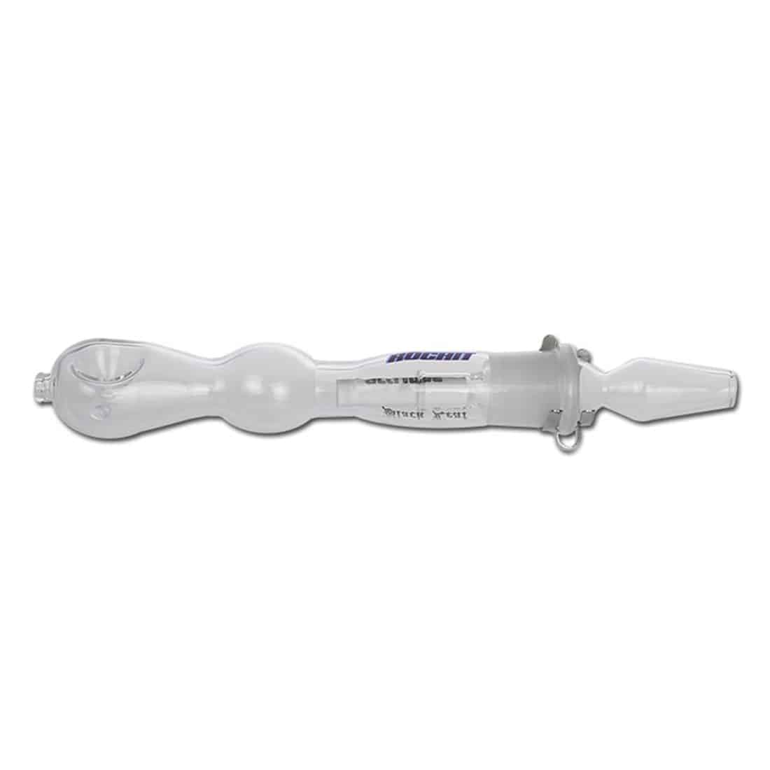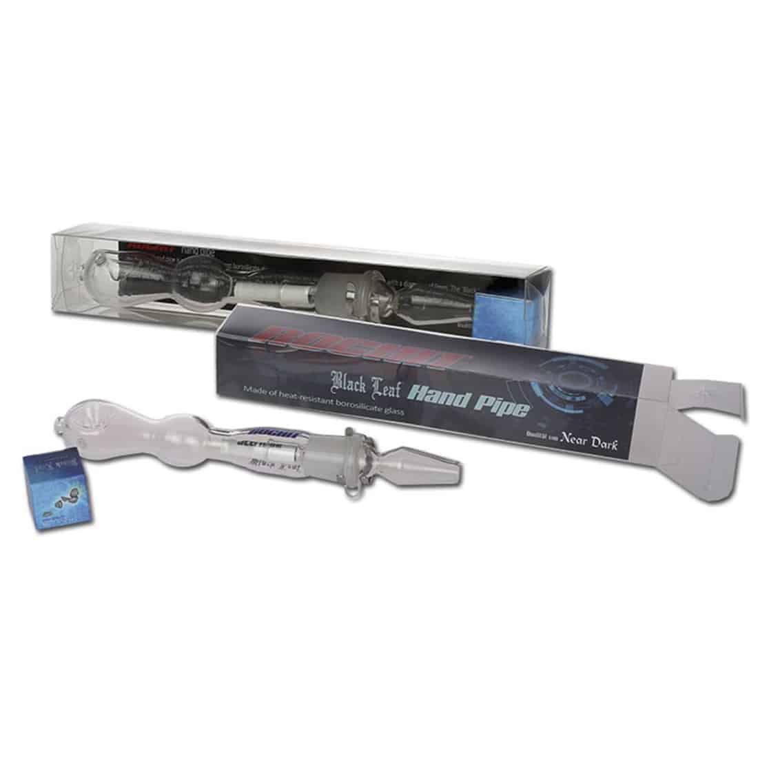 Dette er en stilfuld pure pipe fra Black Leaf, som egner sig ideelt til at ryge rene skud på, men kan sagtens også bruges til almindelig bongmix, med de tilhørende skålriste der medfølger. Den er fremstillet af varmebestandigt borosilikat glas, og kommer i to dele der bliver holdt sammen af en adapter klemme, og kan derfor nemt skilles ad for at lette rengøringen. Dette gør også at du samtidig hurtigt kan udskifte det medfølgende 8 mm carbon filter, der hjælper med at filtrere uønskede stoffer der dannes fra røgen, og dermed også giver en mere “glat” og aromatisk rygeoplevelse. Piben kommer med et sliphul på siden, og har en indbygget rulle-stopper på hovedet, så du er sikker på at det ikke triller væk og går i stykker. Vi anbefaler at bruge en piberist på 15 mm, plus et carbon filter med en længde på 36 mm, samt en diameter på 8 mm.