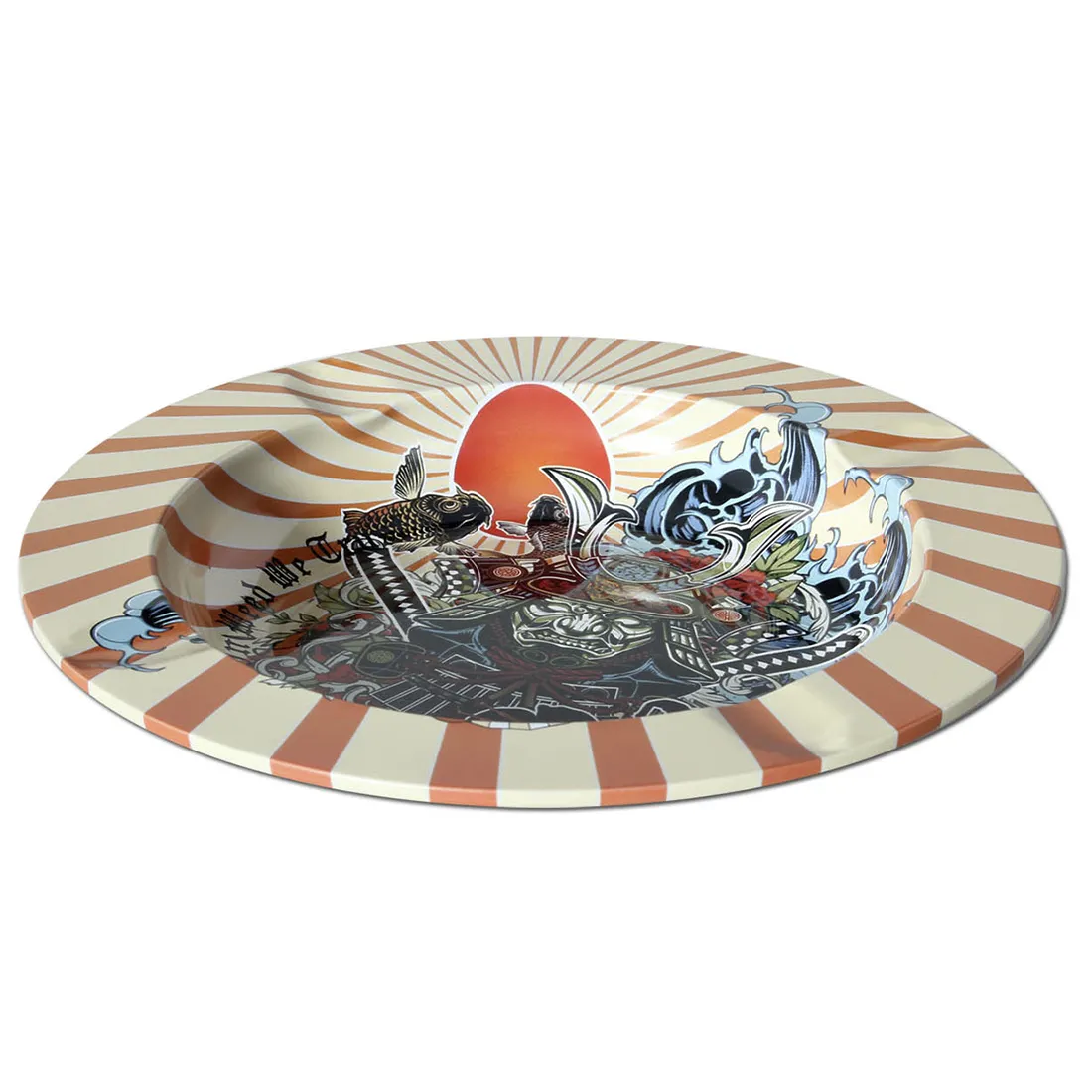 Dette Black Leaf RONIN & GEISHA metal askebæger, er det perfekte askebæger til at pryde rygeområdet med sin unikke og farverige design. Det er lavet af letvægtsmetal, som gør det både holdbart, nemt at rengøre, og vigtigts af alt: Billigt! Med fire cigaretriller rundt i kanten, giver askebægeret optimal plads til flere rygere.. Den pladsbesparende form gør det nemt at stable og opbevare hvis du har flere sjove designs du gerne vil skifte imellem.