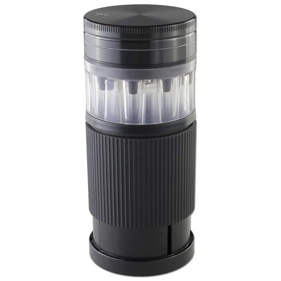Med Black Leaf Smoke Lover får du et smart 2-i-1 grinder, der både fungerer som grinder og cone filler. Det robuste aluminium, giver en god grinder med roterende blade, der hurtigt kværner dine urter, som derefter automatisk fordeles ligeligt ned i op til 8 King Size cones, via det smarte propelsystem. Dette gør det super nemt og hurtigt at fylde flere cones på samme tid, uden spild og uden besvær. Den gennemsigtige midterdel giver dig overblik over processen, og det solide design sikrer den en lang levetid. Perfekt til dig, der vil spare tid, og altid have dine cones klar på rekordtid.