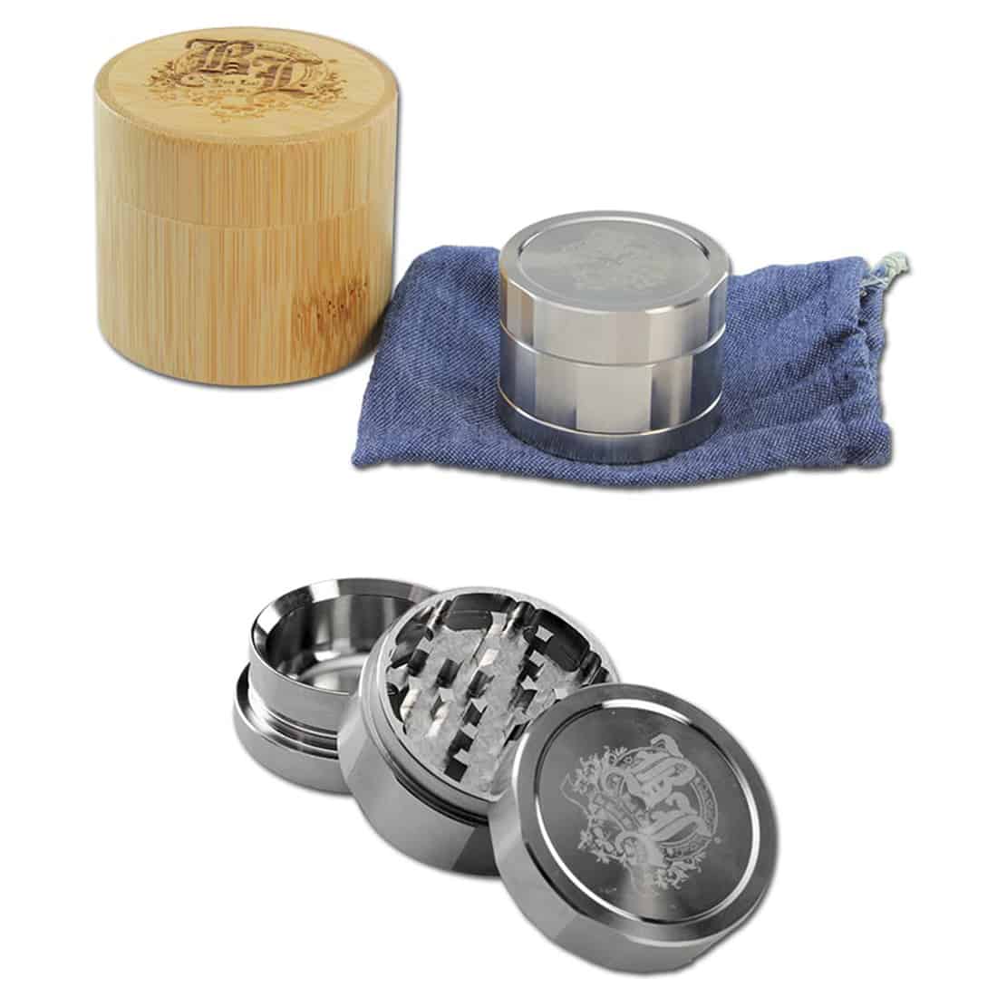 Denne super stærke grinder fra Black Leaf er nærmest umulig at ødelægge. Den kommer med et specielt tandsæt og stærke tænder, som hjælper med at grinde din plante til perfektion. Grundet dens høje kvalitet og robusthed, kan den sagtens tage sig af både kompakte topskud der normalt er svære at grinde. Det rustfrie stål gør den ikke kun ekstremt stærk, men også let at rengøre, da materialet tåler kogende vand. Delene er holdt sammen med stærke magneter, og nylon ringene på siden sikrer en god stabilitet. Bliver leveret i en praktisk Black Leaf bambus beholder, samt en stofpose fremstillet af jeans, der gør den nem og diskret at have med rundt. Hvis du synes 49 mm ikke er stort nok, findes også i en større udgave på Ø59 mm.