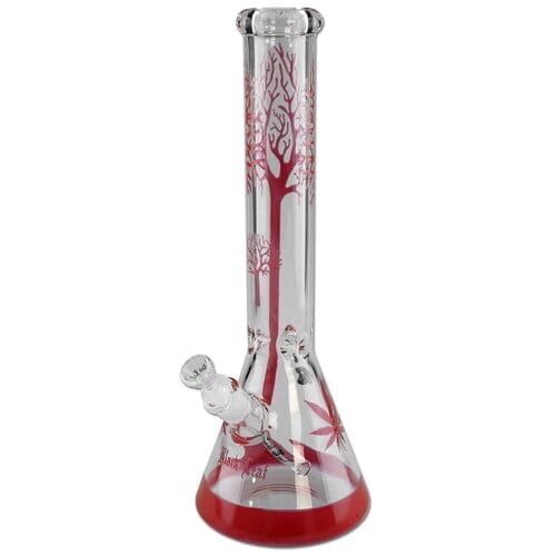 Leder du efter en smuk og nyttig bong i en ekstra solid tykkelse på 7 mm? Vi har den lige her! Denne glasbong fra Black Leaf er 40 cm høj, og har en diameter på 40 mm, hvilket gør den ideel til både nybegyndere og erfarne bongrygere. Den indeholder også en isfanger, der skal bruge isterninger til at holde din røg kølig, der efter at være blevet kølet hele vejen op langs halsen, er dejligt behagelig kold og glat at inhalere. Vi anbefaler at bruge en rist på 12,5 mm til denne Tree Flask Bong.