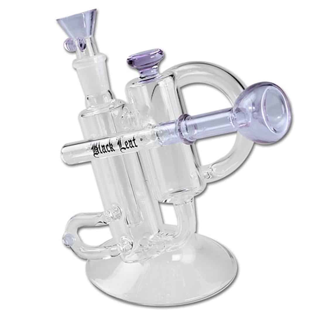 Leder du efter en flot og unik bong, der vil hjælpe dig med at nyde dine favorit urter på en helt ny måde? Så skal du bare fortsætte med at læse om denne Black Leaf Trumpet Recycle Bong! Bongen som har et design, der er inspireret og døbt efter et musikinstrument, er lavet af lillafarvet genbrugs borosillikat glas, og står 20 cm høj, hvilket gør den til den perfekte størrelse til at nyde den derhjemme, eller tage med på tur. Trumpet Recycle Bong har et lift-off bonghoved til urter, samt en indvendig diffuser med slits, og et andet røgkammer før trækrøret. Dette sikrer, at din røg bliver glat og nedkølet ved hvert sug. Bongen kommer med et kreativt mundstykke som du ikke har set det før, der ligner mundstykket på en trompet, hvilket bidrager til det overordnede musikalske tema på dette mesterværk! Inhalér og få den bedste smagfulde røg fra dine urter frem, er præcis hvad denne Trumpet bong fra Black Leaf kan tilbyde! Det unikke design og den iøjnefaldende farve, gør det til en fantastisk tilføjelse til enhver samling, og en på grund af den lave pris, en unik gaveide til din bongrygende veninde eller dig selv! Vi anbefaler at bruge en rist på 10-12,5 mm sammen med.