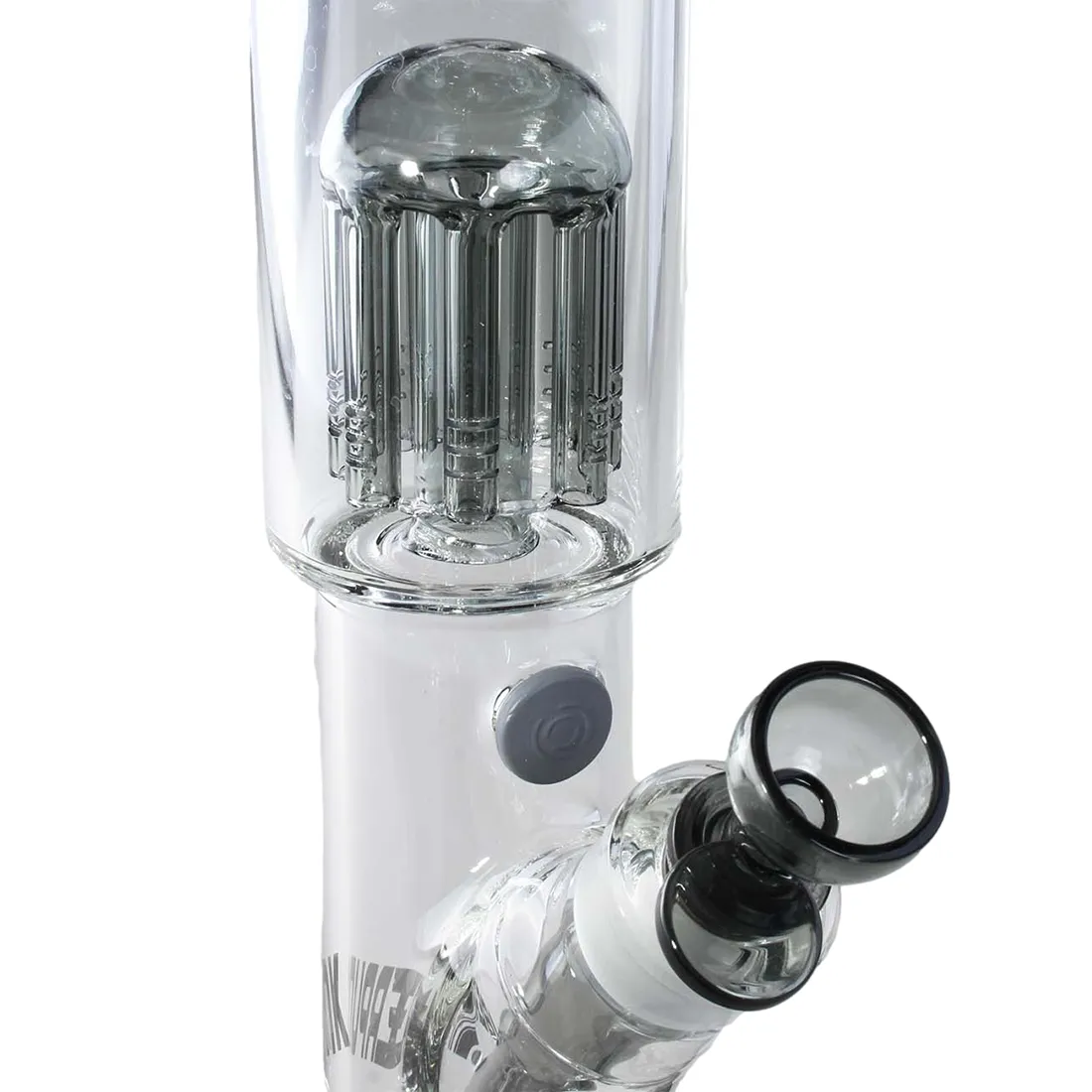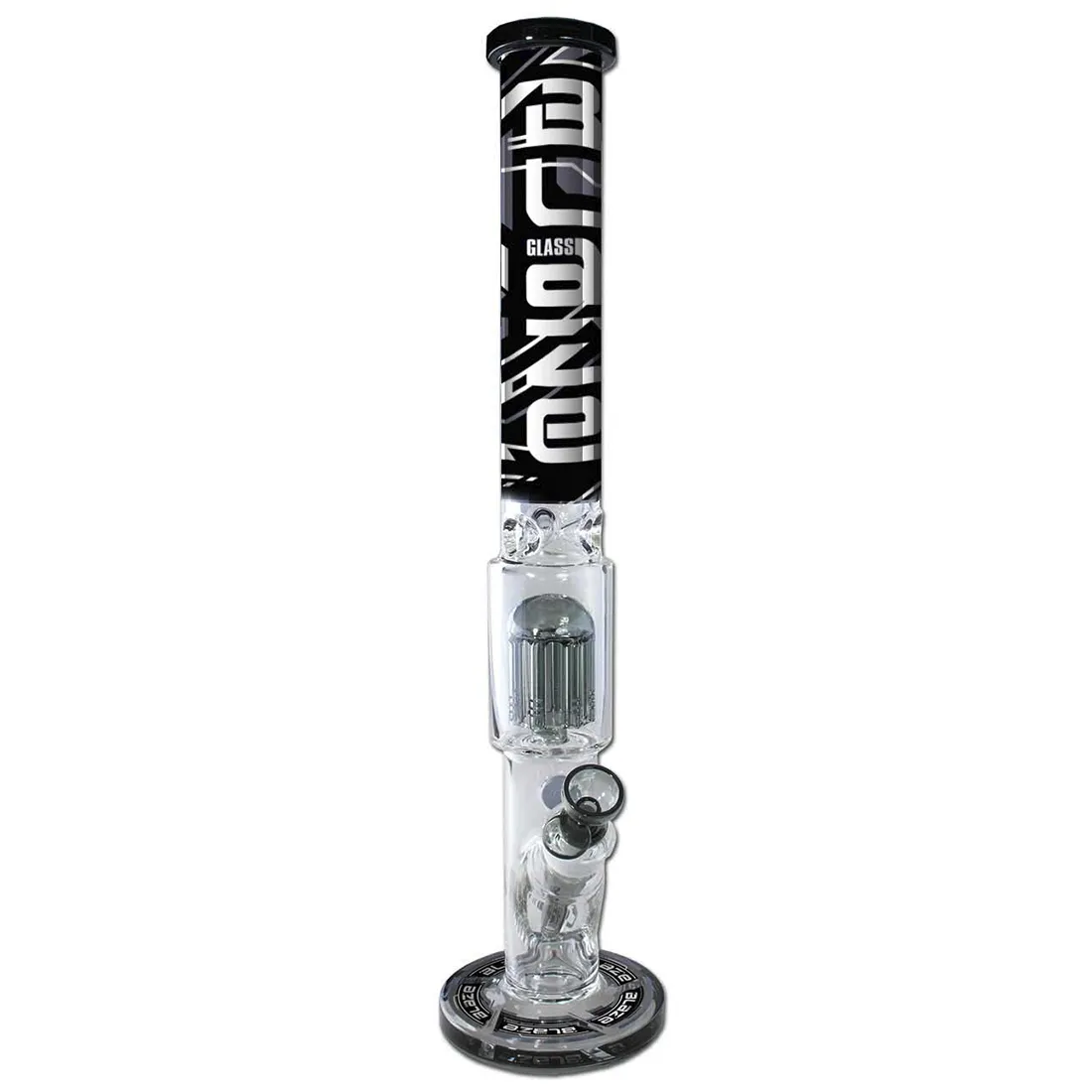 Denne Cyberpunk Cylinder Bong fra Blaze Glass, er en tung sag på hele 52 cm, skabt til dig der vil have både specielt design, og med maksimal køling. Designet er lavet af kunstneren Sly, med metallisk og spejlende effekter, der giver et dystopisk cyberpunk look, som skiller sig markant ud fra almindelige bonger.Den massive 7 mm glastykkelse gør den ekstra robust, mens slamrøret med slit-diffuser og den store 8-armede percolator, sikrer at røgen bliver effektivt nedbrudt i fine bobler. Kombineret med isfangeren i halsen, får du en kølig og glat røg, selv når der er tryk på. Bongen har desuden et sliphul med gummiprop, og en stabil rund fod, så den står solidt på bordet. Vi anbefaler at bruge en rist på 12,5 mm.