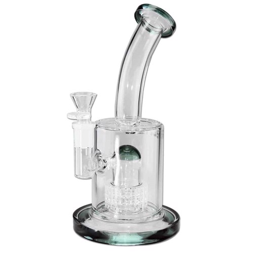 Denne Blaze Glass Drum Percolator bong er fremstillet i solidt borosilikatglas, og drum percolatoren sørger for en intens bobbelflow, der effektivt køler røgen ned og gør hvert sug mere behageligt. Bongen er udstyret med en splashguard, så du undgår vandstænk, samt et klassisk lift-off hoved til dit bongmix, hvor vi anbefaler at bruge en 10-12,5 mm standard rund rist. Med sine 26 cm i højden, og den stabile fod, står den sikkert på bordet, og den tykke glastykkelse på 5 mm, gør den ekstra holdbar. Vil du bruge den som dab-rig, kan du nemt udskifte hovedet med en banger på SG 14,5 mm (han / male). Bemærk at dette ikke medfølger.