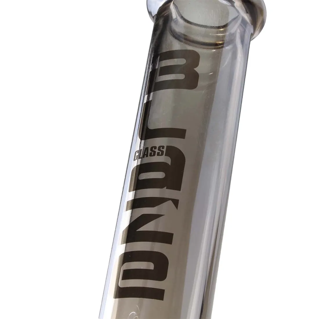 Blaze Glass Gear Bong er en flot cylinderbong, der kombinerer funktionalitet med et råt industrielt look. Den karakteristiske tandhjulsformede fod, giver ikke kun et unikt design, men sikrer også god stabilitet. Med en højde på 30 cm og fremstillet i slidstærkt borosilikatglas med en tykkelse på 4 mm, er denne bong bygget til at holde til daglig brug. Den er udstyret med et slit-diffuser slamrør, som effektivt spreder røgen gennem vandet og giver et bobbleflow, for en blødere og mere filtreret ryger. Den kommer den med et sliphul med silikoneprop, hvilket giver dig mulighed for at styre luftgennemstrømningen og lette rengøringen. Bonghovedet har en bred hank, og takket være den lille passage kan det bruges uden rist, selvom vi dog anbefaler en 10 mm rist hertil for den mest optimal rygeoplevelse. Perfekt til både begyndere og erfarne bongrygere, der ønsker et kompakt men effektivt setup.