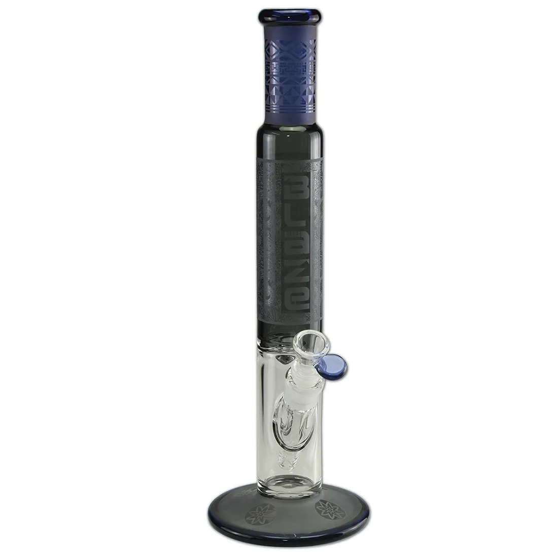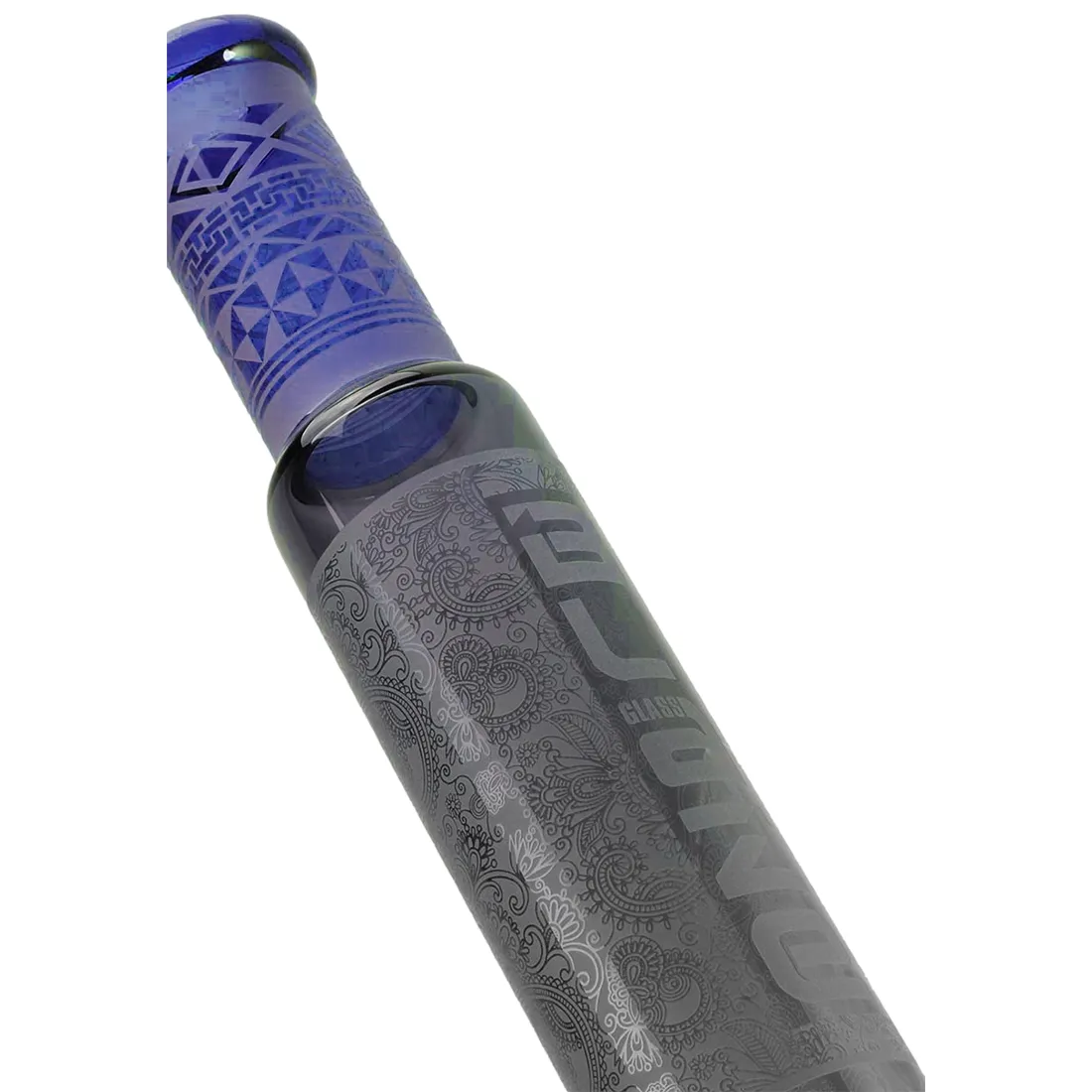 Denne Blaze Glass Glyph bong er en elegant cylinderbong, der kombinerer et stilrent design i en flot blå farve, med solid funktionalitet. Det frostede glas og de detaljerede mønstre giver bongen et eksklusivt udtryk, og da den er fremstillet af slidstærkt borosilikatglas med en glastykkelse på 5 mm, er du sikret en mere robust og holdbar konstruktion. Den er udstyret med et “slit-diffuser” slamrør, der sikrer en effektiv filtrering af røgen, og giver en blødere inhalering. Sliphullet i siden kommer med en silikoneprop, giver dig mulighed for at styre luftindtaget efter behov, og sikre at der ikke ryger vand ud igennem under rengøring. Det rummelige bonghoved har plads til en god mængde af dine yndlingsurter, og vi anbefaler en 12,5 mm rist til denne bong.