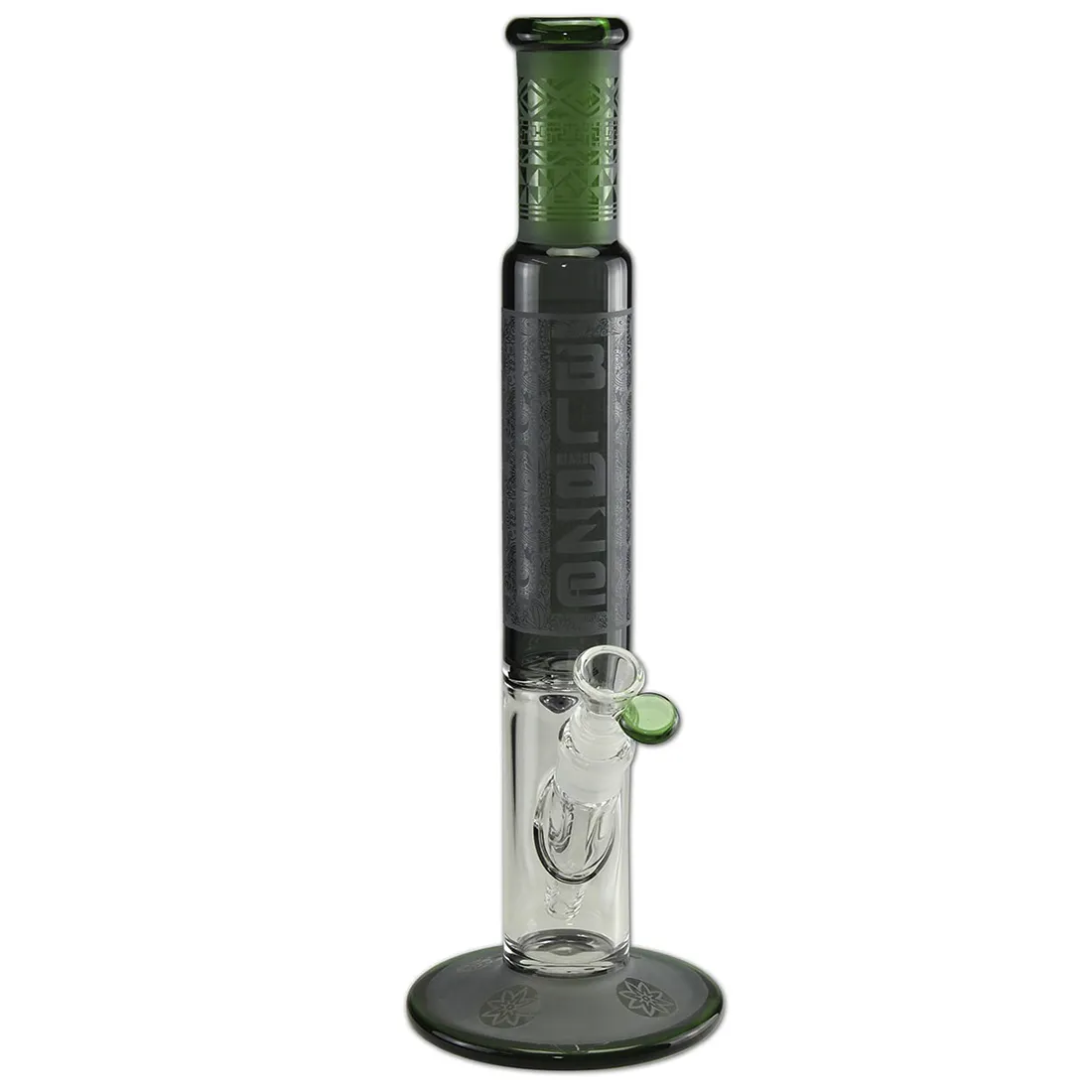 Denne Glyph Bong er en stilfuld og robust cylinderbong fra Blaze Glass, der kombinerer æstetik med goder funktionaliteter. Det frostede glas og de indgraverede mønstre, giver den et eksklusivt udseende, mens den grønne top og fod tilføjer et unikt farvespil. Bongen er fremstillet af slidstærkt borosilikatglas, med en glastykkelse på 5 mm, hvilket sikrer en solid konstruktion. Den kommer med et slamrør med slits i bunden, der effektivt blander røg og vand for en blødere og mere filtreret ryger. Et praktisk sliphul med en silikoneprop i siden giver dig mulighed for at styre luftindtaget, og det rummelige bonghoved sikrer at du får plads til en god mængde af dine yndlings urter. Vi anbefaler at bruge en 12,5 mm rist til denne model.