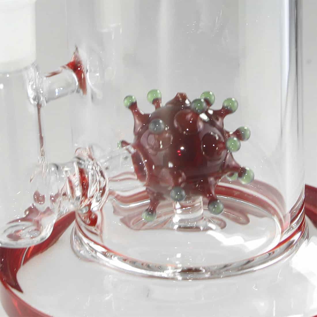 Blaze Glass Virus Ball Dab Rig er en fremragende oliebong til enhver dab ryger. Perfekt til ryge voks, olie og andre koncentrater, der kan dabbes. Virus percolatoren producerer adskillige luft- og vandsvirvler, der køler og filtrerer røgen effektivt, hvilket gør hvert pust ekstremt velsmagende. Virus Ball Dab Rig er konstrueret af robust borosilikatglas, og er beregnet til at holde ud, med en solid bred og rund base, der sikrer stabilitet på bongen. På trods af den robuste konstruktion, er den stadig ret handy på grund af det smarte design. Den kan også bruges til at ryge almindelige urter; udskift blot hovedet med en standard 14,5 mm bonghoved.