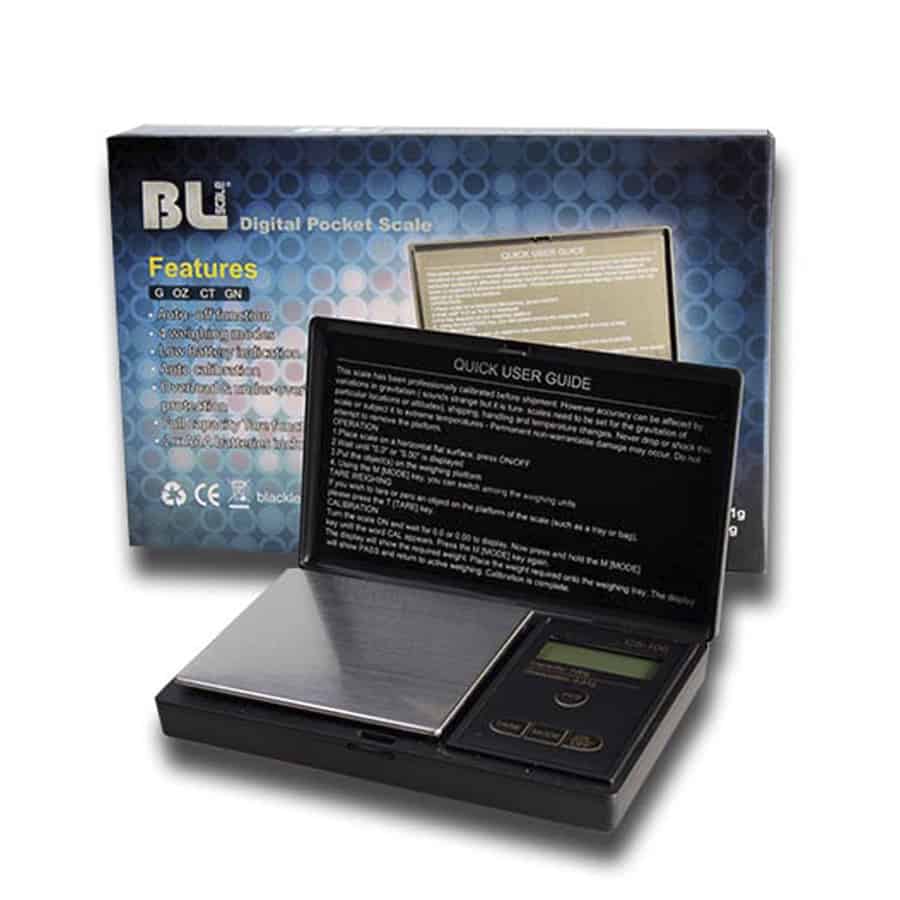Denne digitalvægt fra Black Leaf, kan veje op til 100 gram med en præcision på 0,01 g. Den kommer med overvejnings beskyttelse, kalibrering, og fuld tara funktion, så du hurtig og nemt kan nulstille den. Vægten har en vejeplade på 75 x 64 mm. som er fremstillet i rustfrit stål, og kommer med et låg til beskyttelse under opbevaring eller transport. I låget finder du også en brugervejledning på flere sprog, som gør det utrolig let at betjene den.