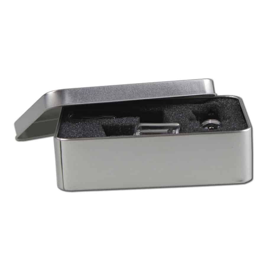 Denne banger kommer med et matchende Carb Cap, lavet af varmebestandigt borosilikat glas. Bliver leveret i en praktisk og flot metalæske, der gør den god at opbevare den i derhjemme når den ikke bruges, og samtidig perfekt til at have med rundt, da den ligger sikkert og godt beskyttet. Det tidsløse design gør at den passer flot på de feste dab rigs og olie bonger, og kvaliteten gør denne banger til et godt valg. Bemærk at bangeren kun må opvarmes på undersiden, da der ellers er risiko for at glasset går i stykker på grund af udvidelse fra varmen.