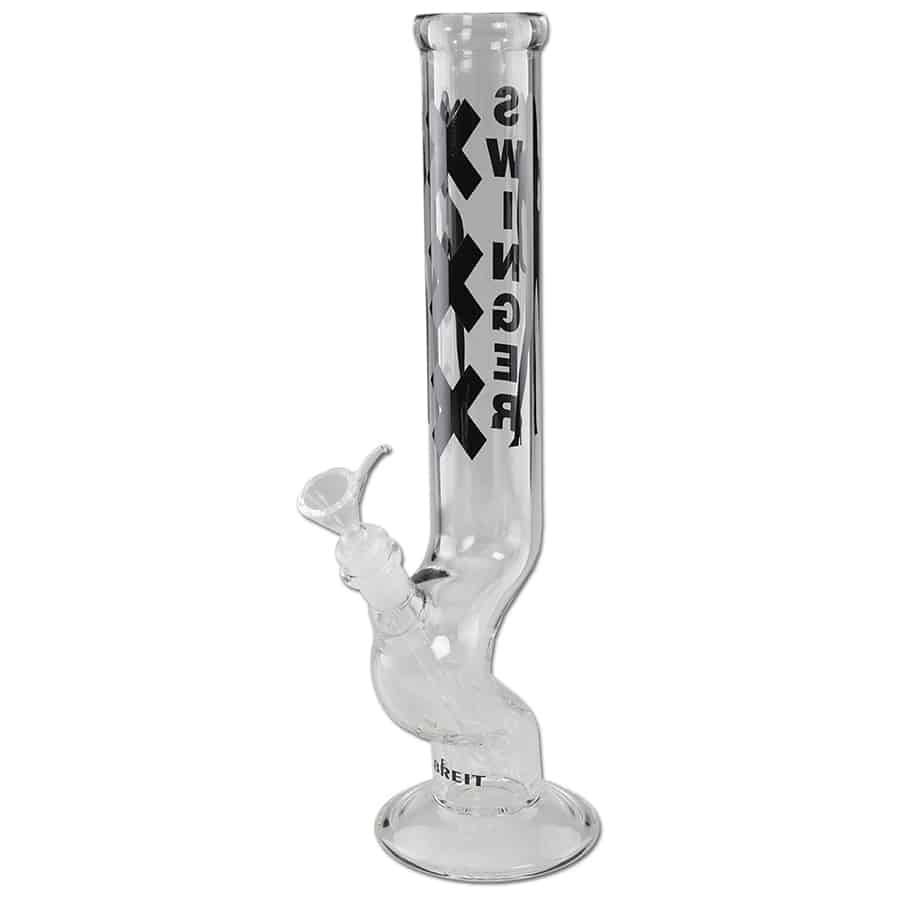 BREIT Swinger er en klassisk buet glasbong på 38 cm, lavet i 3 mm tykt glas, hvilket giver en fint holdbar konstruktion. Designet er enkelt og frækt, i en kombination af klart og sort glas, der gør den både praktisk og hyggelig når den skal swinges rundt. Med en diameter på 50 mm, får du et godt airflow, og slamrøret på 15 cm sikrer en effektiv fordeling af røgen gennem vandet. Slamrøret er SG 18,8 mm og kommer med et medfølgende hoved på 14,5 mm. Vi anbefaler en rist på 12,5 mm.