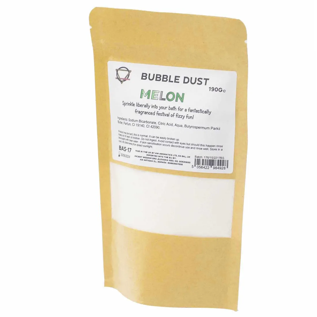 Bubble Dust i “Melon” udgaven har en frisk og sprød duft, der straks vækker minder om dugfriske sommermorgener. Den lette og optimistiske aroma giver dit bad en forfriskende stemning, perfekt når du vil starte dagen på en frisk, eller slappe af med sommerlige vibes.Badestøvet fungerer ligesom en badebombe, bare i pulverform. Drys den ønskede mængde i det varme vand, og oplev hvordan det bruser op med en ren og frugtig duft. Beriget med sheasmør, som blødgør og plejer huden, så du får et velduftende bad med ekstra selvforkælelse.