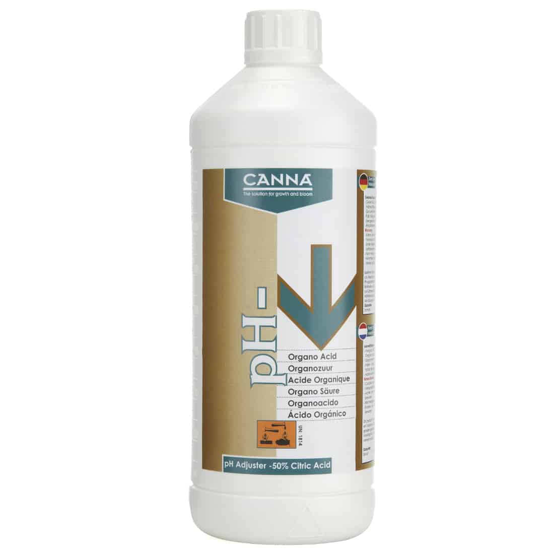 Canna pH down organic acid er et organisk syrekoncentrat der indeholder 41% citronsyre, og er beregnet til at sænke pH-værdien i vand eller kokos substrater. Det er fremstillet med ingredienser af højeste kvalitet, og er 100% naturlig, samt sikker til brug i nærheden af børn og kæledyr. Den er let at bruge, og er en vigtig del af enhver dyrkers værktøjskasse, da den er afgørende for din plantes optagelse af næringsstoffer, og at holde den rette pH-værdi. Desuden tjener det godt som erstatning for salpetersyre og fosforsyre.Sådan anvender du CANNA – pH- Organic AcidBland 2 ml koncentrat pr. 10 liter vand (1:5000), og mål pH-værdien. Gentag om nødvendigt ovennævnte trin, indtil den ønskede “surhedsgrad” er opnået. Anbefalet pH-værdiområde: 5.2 – 6.4. – Må ikke blandes med andre kemikalier. Hold børn og dyr væk fra dette produkt. Opbevares ved en temperatur på mindst 5 grader på et mørkt sted. Citronsyre skaber et miljø, hvor bakterier og skimmelsvamp trives, så det er vigtigt at tømme og rengøre tanken regelmæssigt.