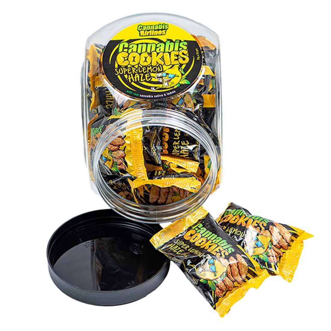 Cannabis Airlines Hemp Cookies i Super Lemon Haze varianten, er småkager med en frisk og syrlig citrusnote, kombineret med hamp. De sprøde cookies er både anderledes og sjove, og giver en smag der skiller sig ud fra de klassiske småkager. Med citronstykker og hampe protein, får du en unik oplevelse, hvor sødme og syrlighed mødes. Småkagerne er produceret i Spanien med gode kvalitets råvarer, og den praktiske 20 grams pakke gør dem nemme at tage med på farten.Bemærk at de ikke indeholder THC eller CBD.