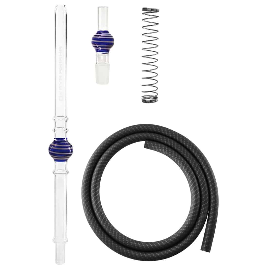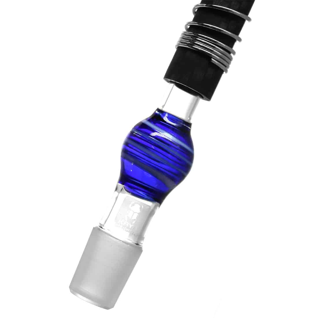 Carbonish Lolly Stick slangesættet i blå og hvid er en frisk og stilren tilføjelse til din vandpibe, hvor både smag og æstetik går hånd i hånd. Mundstykket og adapteren er lavet i klart glas med en farvestribet kugle, som matcher i begge ender. Den medfølgende 150 cm lange silikoneslange er fleksibel og behagelig i brug, og anti-kink fjederen forhindrer utilsigtede knæk og luftstop. Et godt sæt med 18.8 mm glasforbindelse, der egner sig ideelt til både klassiske og moderne opsætninger.