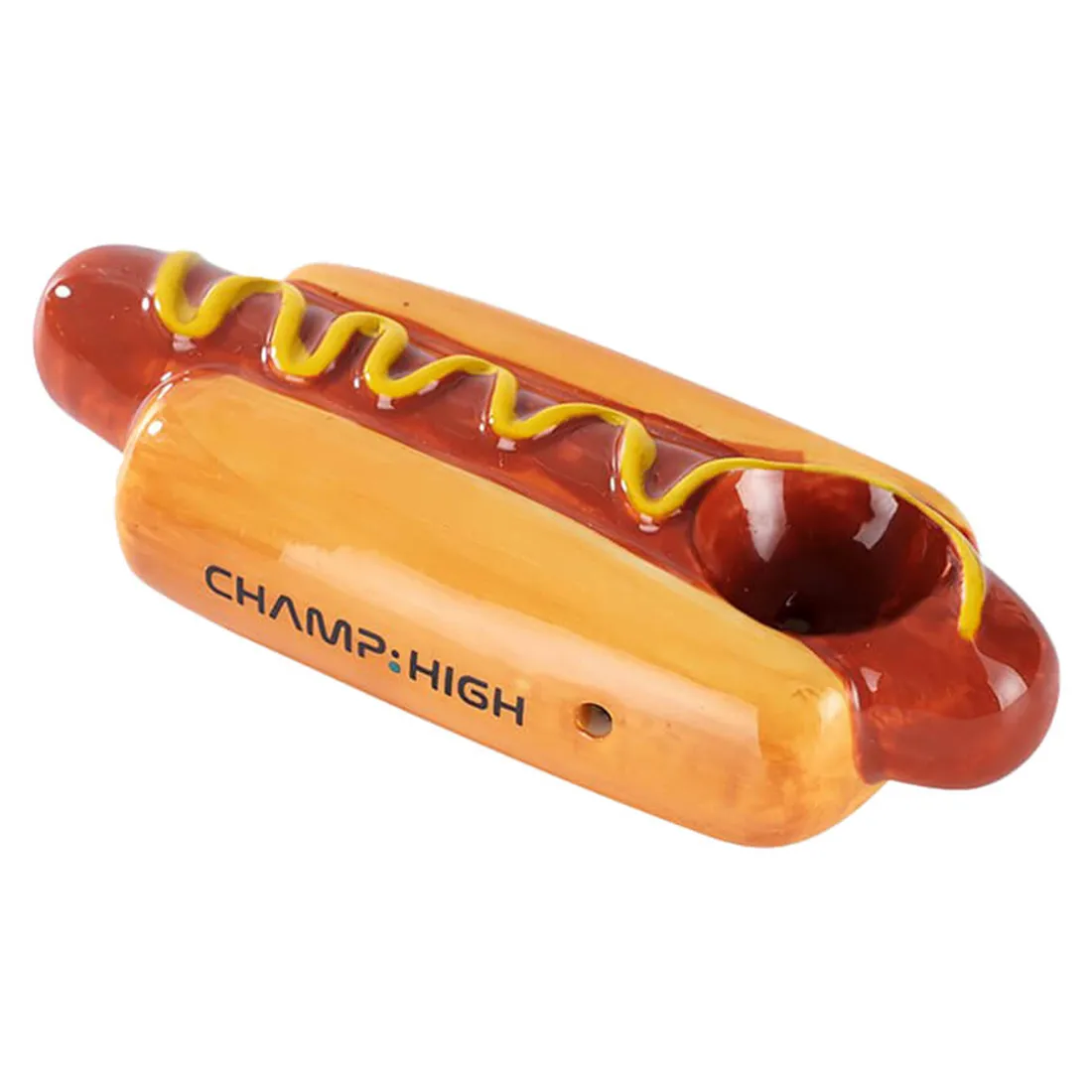Hvis du elsker hotdogs og tjald, kan du nu nyde dem sammen på bedste vis! Nemlig med denne Hotdog pibe fra Champ High, der gør enhver kedelig ryger til noget mere specielt. Den er fremstillet af keramik, og har dermed varmeresistente egenskaber, der sikrer en glad og behagelig ryger hver gang du fyrer op i den. Den perfekte gaveide til rygeren der har alt, undtagen sjove måder at ryge på! Det ergonomiske design giver et komfortabelt greb, og vi anbefaler at bruge en rist på 10-12 mm. Så forkæl dig selv med en pibe der bringer et smil frem hver gang du tænder op, med denne hotdog pibe fra Champ High.