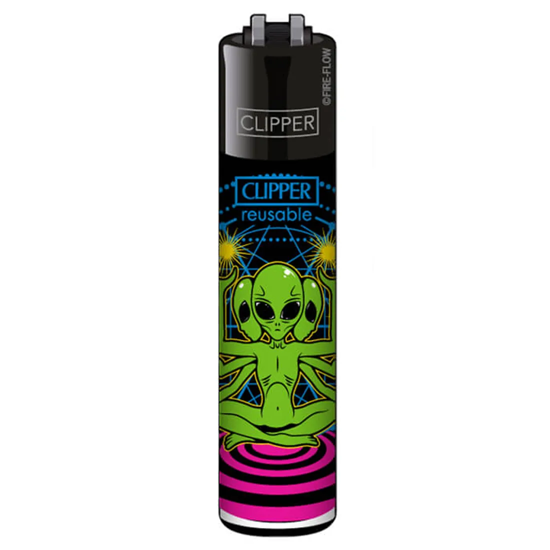 Clipper “Alien Hologram” er en anderledes lighter med et futuristisk grønt alienmotiv, i et holografisk inspireret design. Den solide konstruktion sikrer en lang levetid, mens den runde facon gør den behagelig at bruge, fordi varmen ledes væk fra fingrene. Du får en stabil og ren flamme, som ikke soder, og lighteren kan nemt fyldes op igen. Flintsystemet kan skiftes separat, hvilket gør den ekstra holdbar i længden. Vippes lighteren på skrå, får du det velkendte flammeboost, som Clipper er kendt for – perfekt til bong, pibe eller hurtig optænding i vinden.