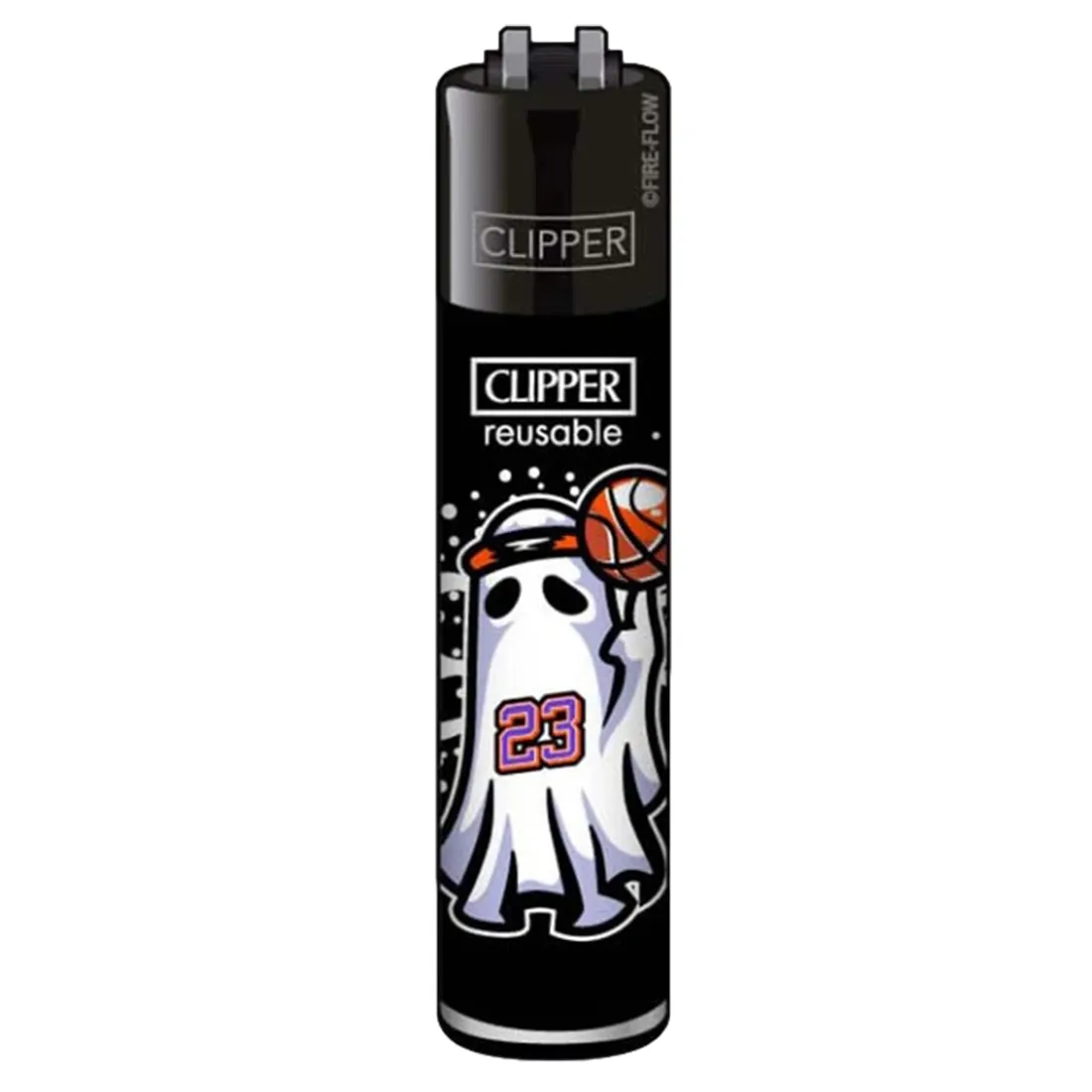 Spook the court! Denne Clipper lighter rocker et basketball spøgelse, svingende med bolden og nummer 23 på brystet, en legende scoreboard reference til sportens GOAT. Perfekt til dig, der elsker at blande lidt street-art med sport og selvironi. Indeni banker Clipper hjertet stadig stærkt: Den er genopfyldelig, har en stabil flamme gennem Clippers egen velkendte lightergas, samt et udskifteligt flint- og stensystem, der holder i årevis og kan udskiftes løbende. Drejer du den på skrå, får du det klassiske flamme boost, perfekt til bong og pibe rygning. En lighter, der både leverer humor, goder funktioner og et blink til basketball historien.