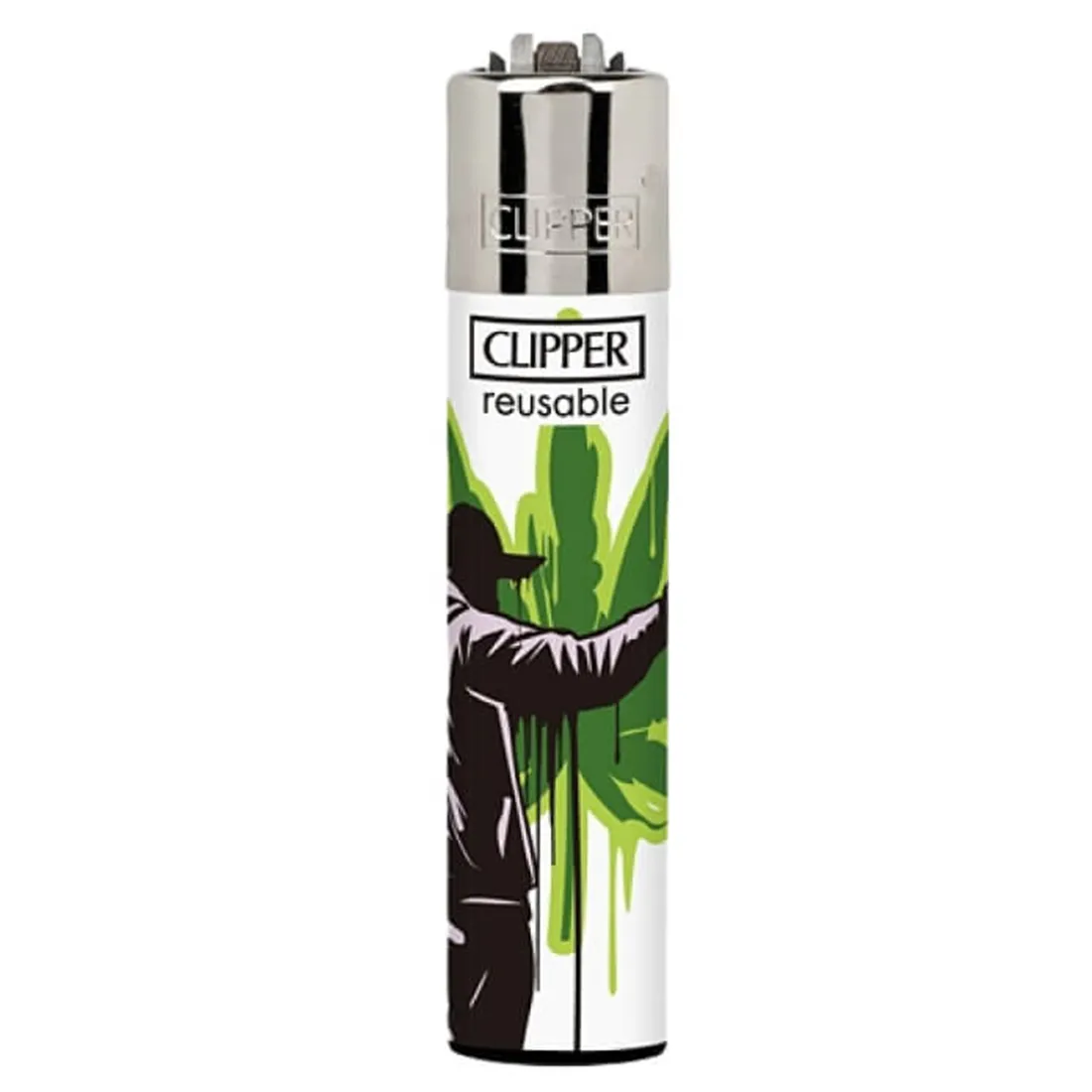 Graffiti vibes og gadekultur i lommeformat! Denne Clipper lighter kommer med et Gangster Weed motiv, der viser en hætteklædt street artist i færd med at spraye et stort lyserødt weed blad på væggen. Designet giver den et råt og farverigt twist, som gør den til et oplagt samlerobjekt for Clipper fans. Som altid får du den velkendte Clipper kvalitet, en genopfyldelig konstruktion, udskifteligt flintsystem, og en stabil flamme hver gang. Vender du den på skrå, kommer det klassiske flammeboost, perfekt til både bong og pibe. En lighter der kombinerer urban kunst og rygerkultur på den mest badass måde.